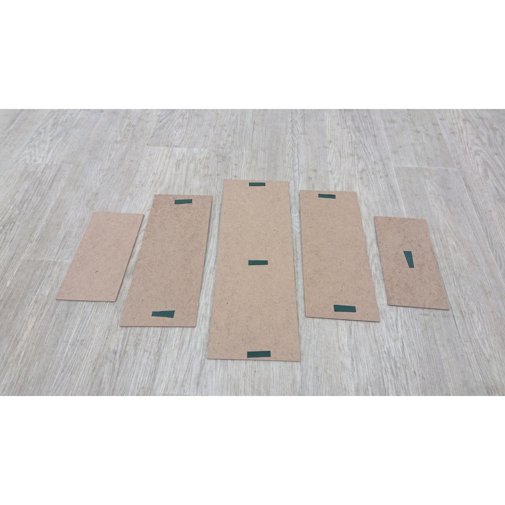 MDF dřevovláknitá deska (tloušťka 3 mm), lepí se na stěnu.