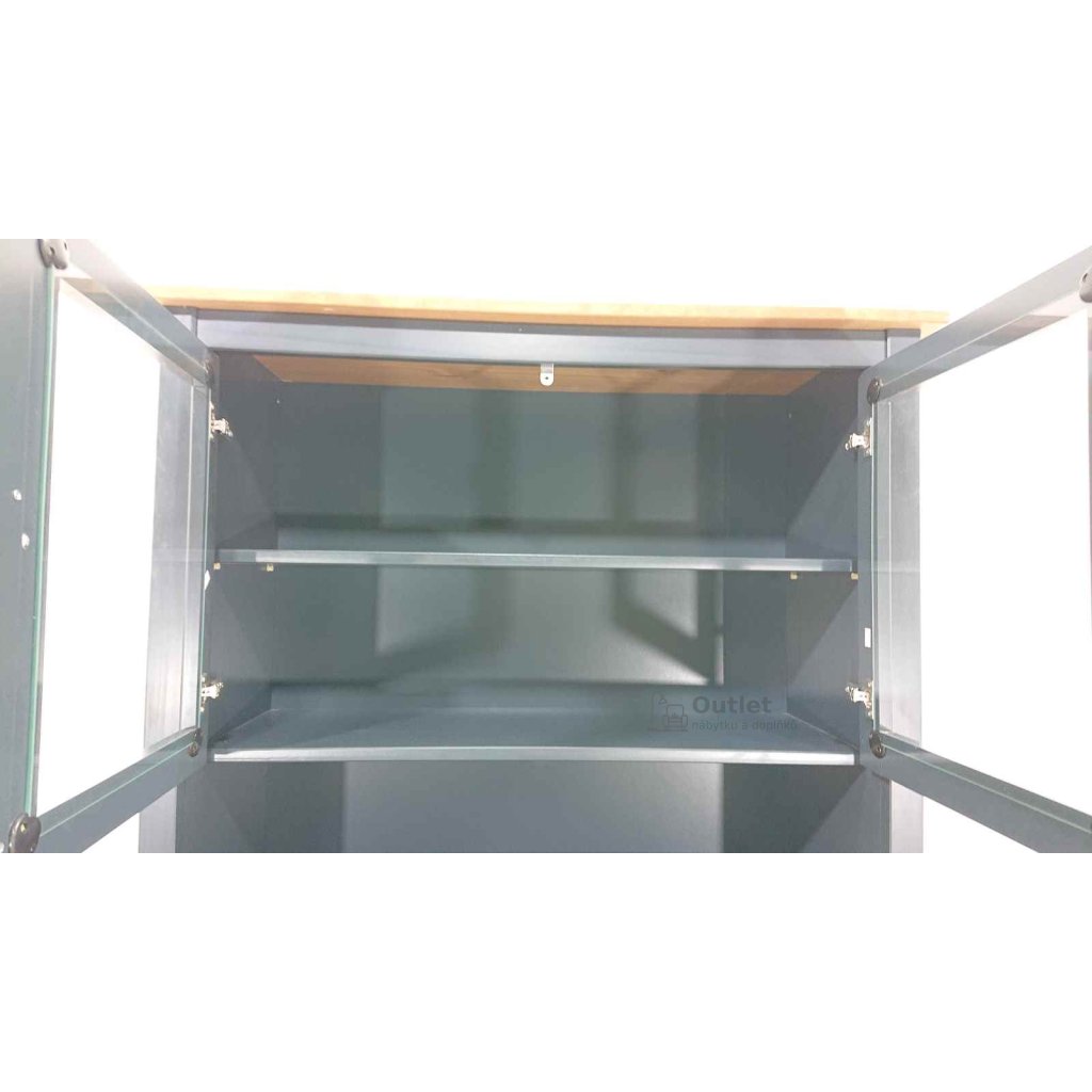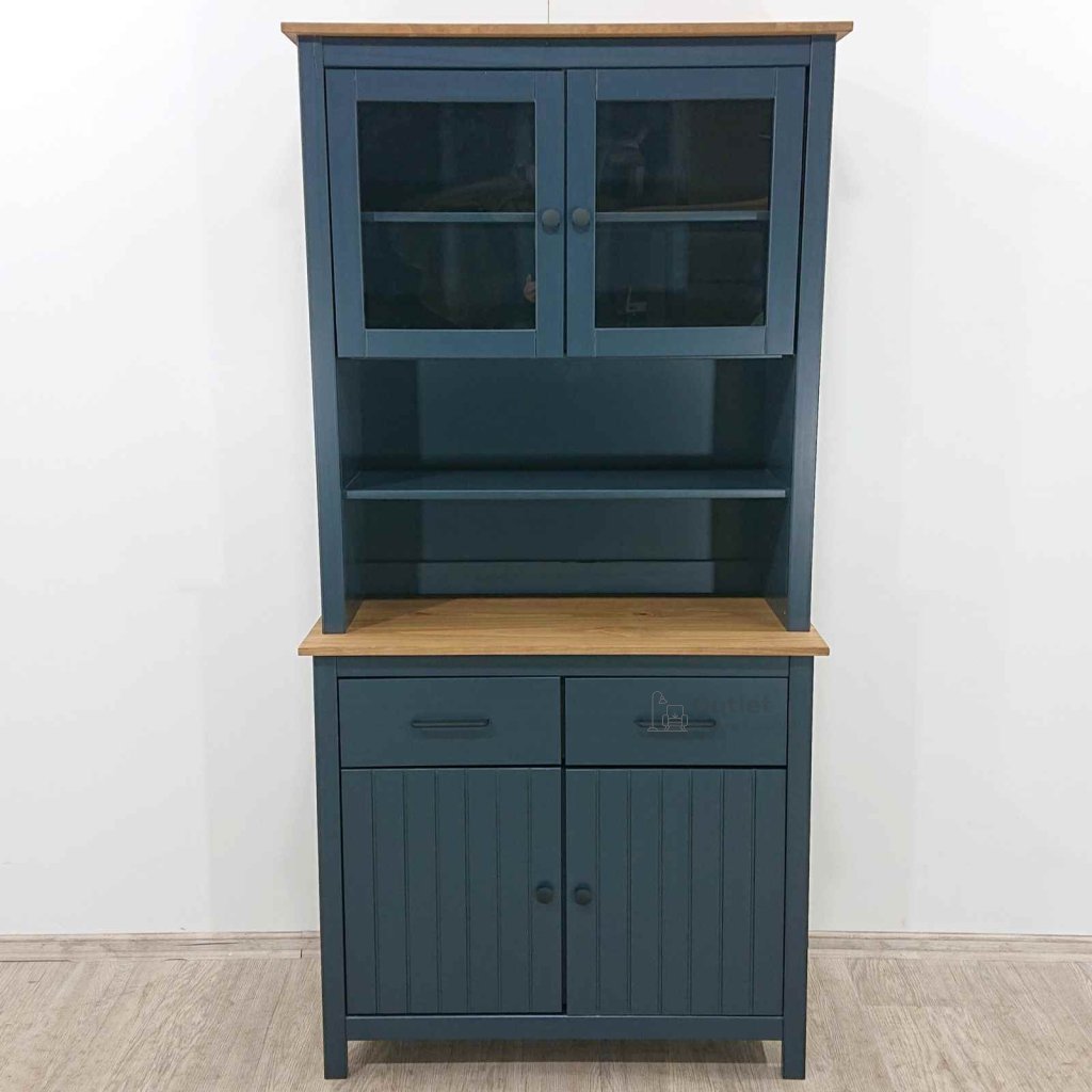 Nádherný dřevěný příborník laděný do selského stylu. Tato vitrína skvěle padne do Provence stylu, hodí se také na chaty a chalupy. Uložte si do ní svůj oblíbený čajový servis i talíře. Masivní desky a černé kovové úchytky podtrhují skvělý design.