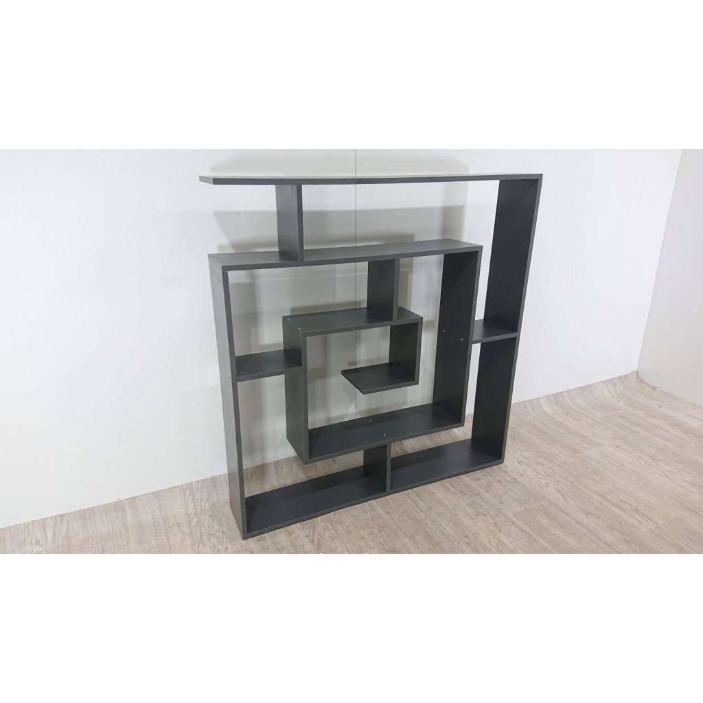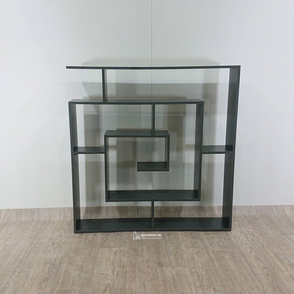 Antracitová knihovna Maze Anthracite. Zajímavě řešená knihovna do moderních interiérů. 125 x 22 x 129 cm (délka x výška x šířka).