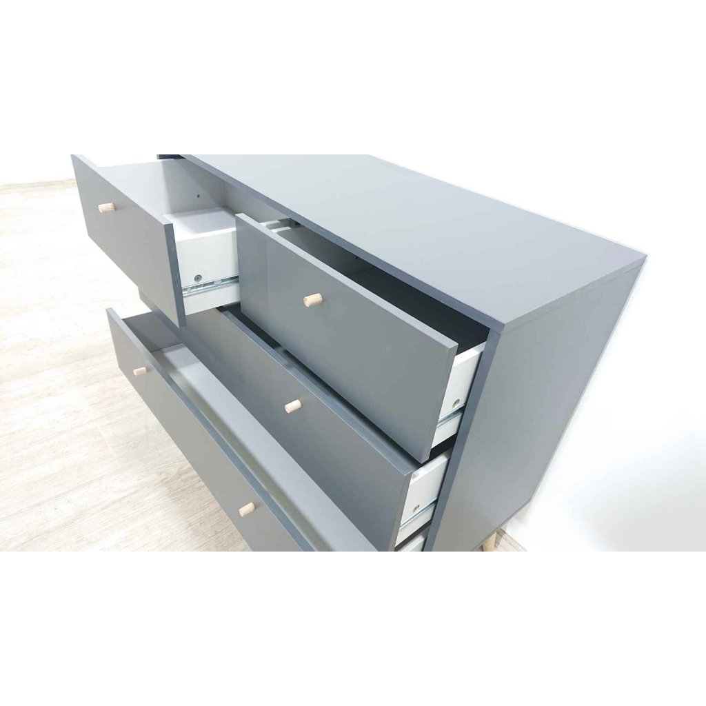 Tmavá komoda s šuplíky vhodná na oblečení i doplňky. Umístit ji můžete do ložnice, obýváku i do dětského pokoje. Tmavě šedá barva doplněná o přírodní dřevěné úchytky a nožky působí hřejivým, útulným dojmem. Tato tmavě šedá komoda ladí s moderním, skandinávským i venkovským stylem bydlení.