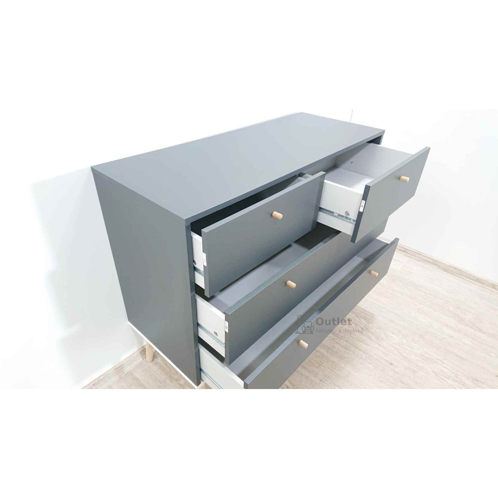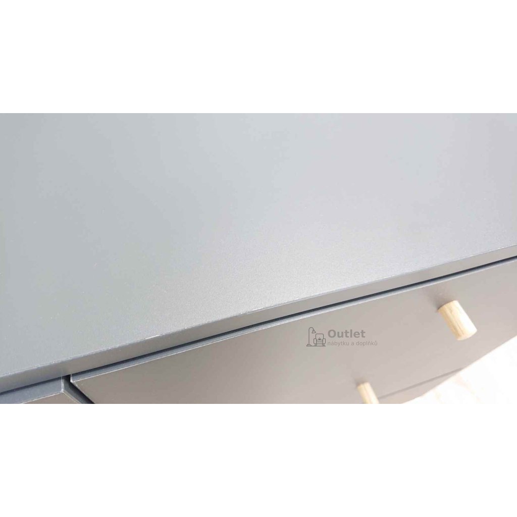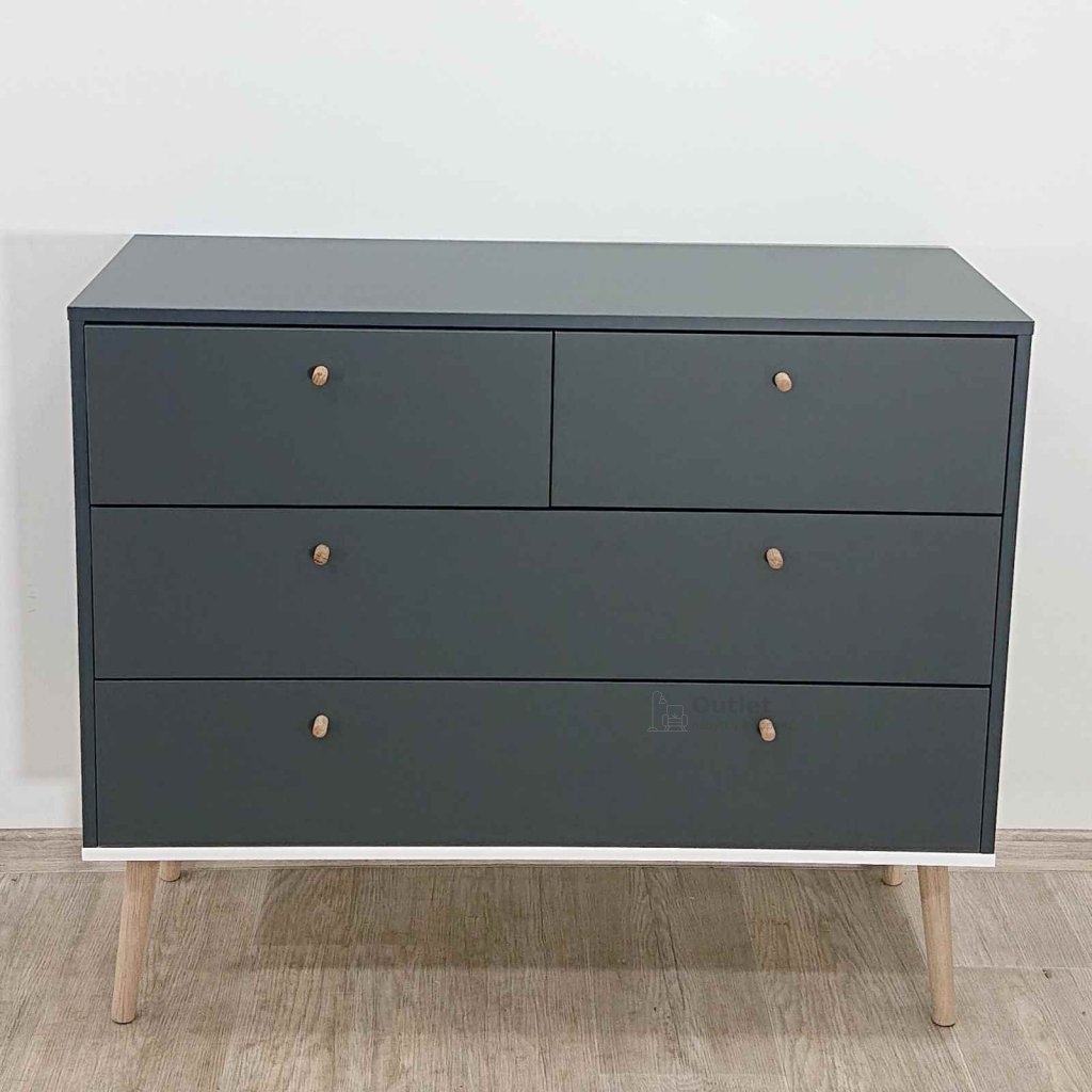 Tmavá komoda s šuplíky vhodná na oblečení i doplňky. Umístit ji můžete do ložnice, obýváku i do dětského pokoje. Tmavě šedá barva doplněná o přírodní dřevěné úchytky a nožky působí hřejivým, útulným dojmem. Tato tmavě šedá komoda ladí s moderním, skandinávským i venkovským stylem bydlení.