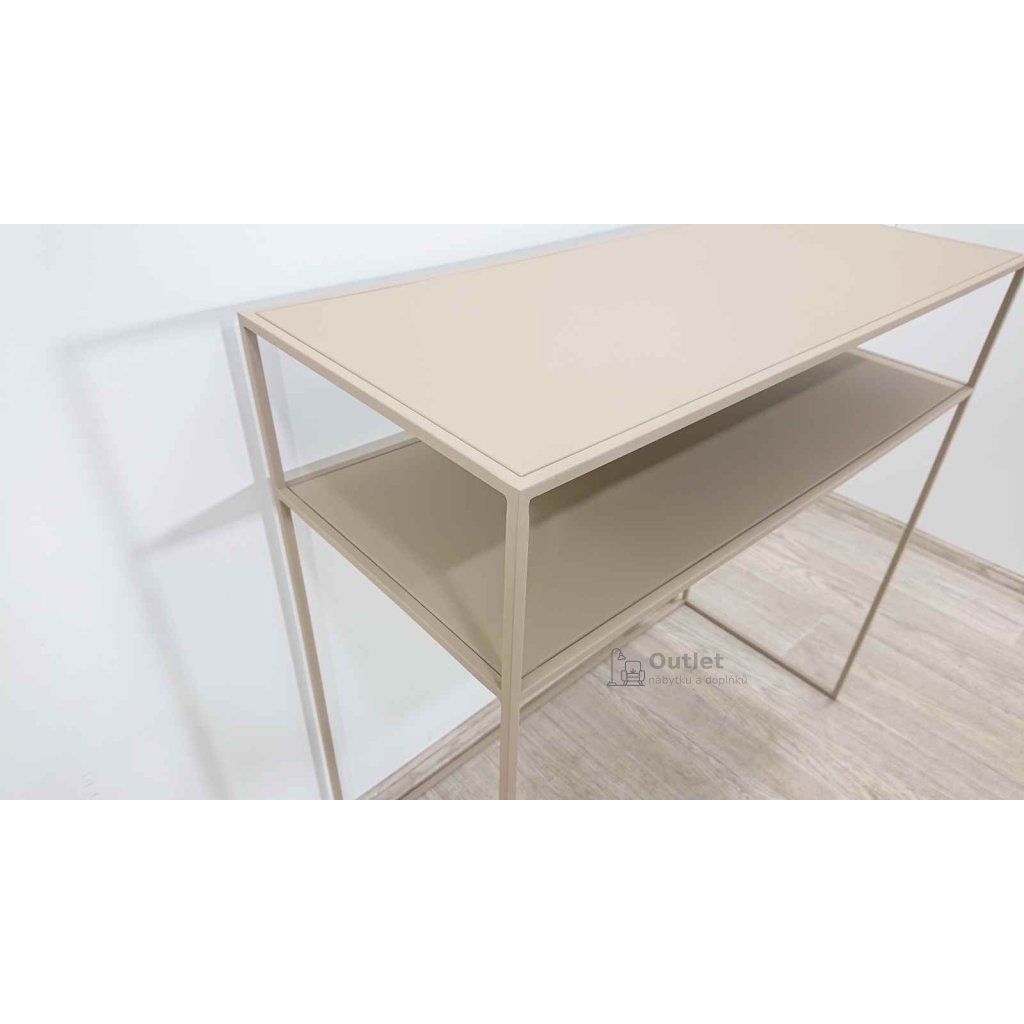 Krásný vyšší stolek se dvěma policemi vhodný do předsíně, obýváku i do ložnice. Na police můžete vyskládat dekorace, květiny, fotorámečky a do spodní police můžete dát třeba úložné boxy.