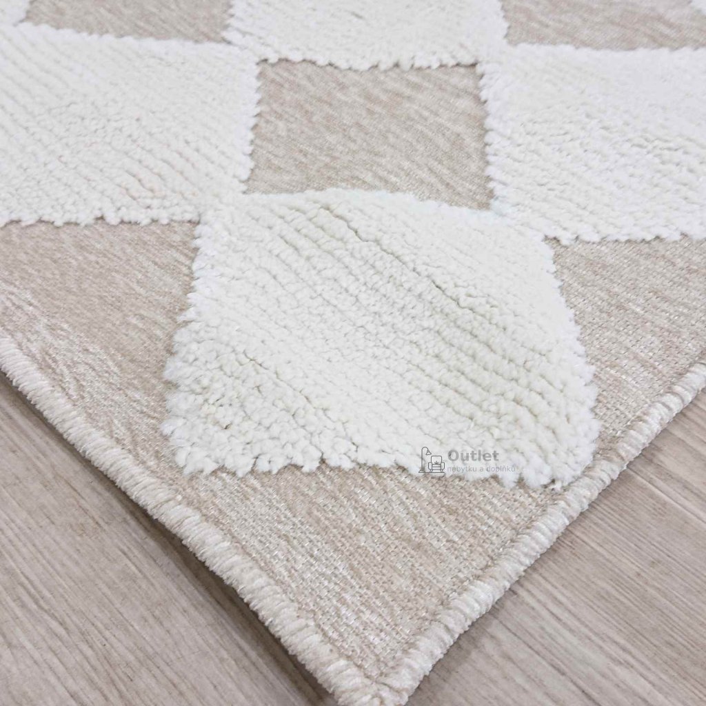 Nádherný koberec, který vás nadchne jak vzhledem na materiálem. Je velice příjemný na dotek, bílé části jsou více vystouplé než hnědé a celkově koberec působí útulným dojmem. Ladí s moderním, severským i boho stylem.