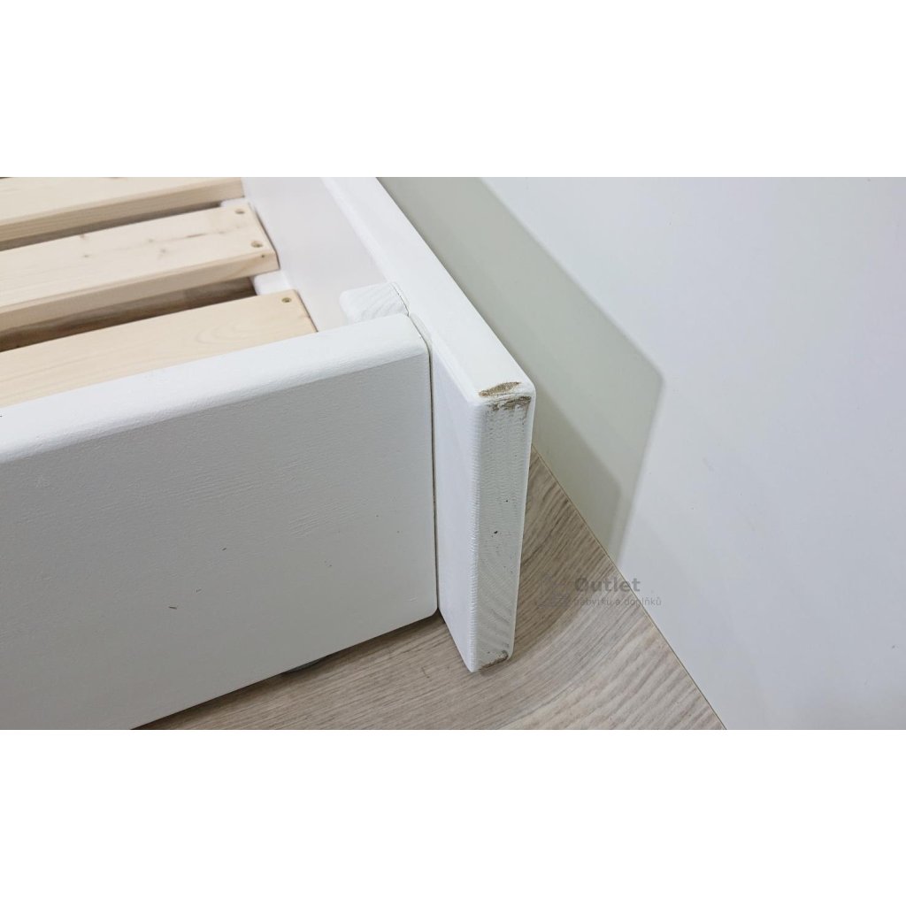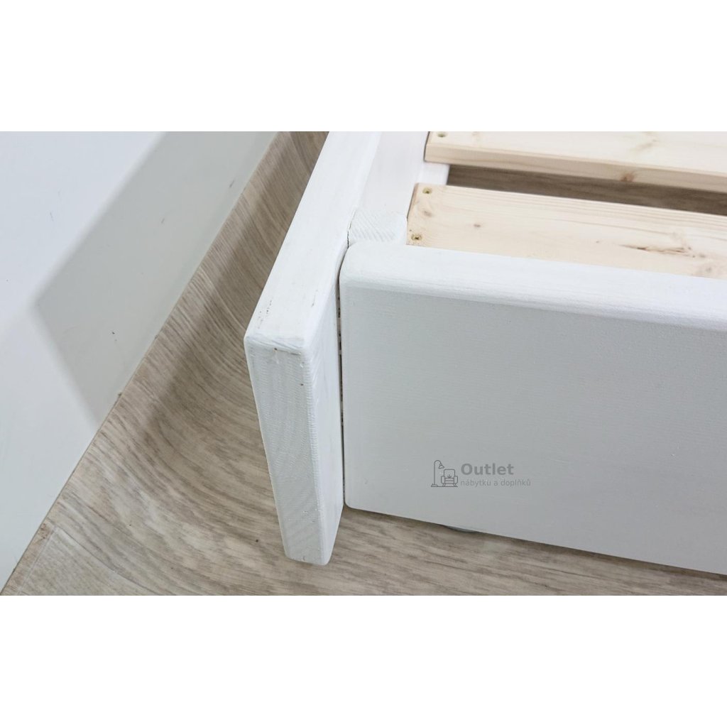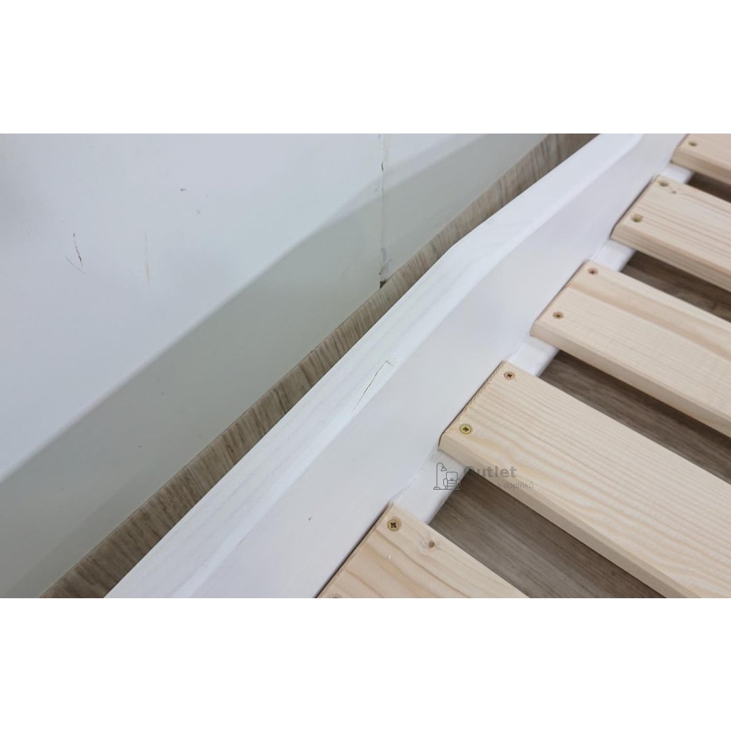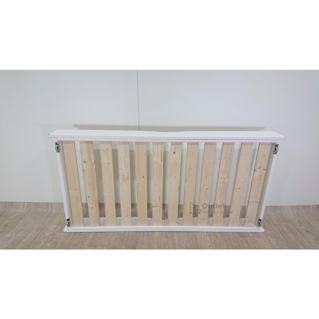 Rozměry: 95.6 cm délka, 193.8 cm šířka, 22 cm výška, nožky délka 20 cm, profil 6 x 6 cm, velikost roštu 90 x 180 cm