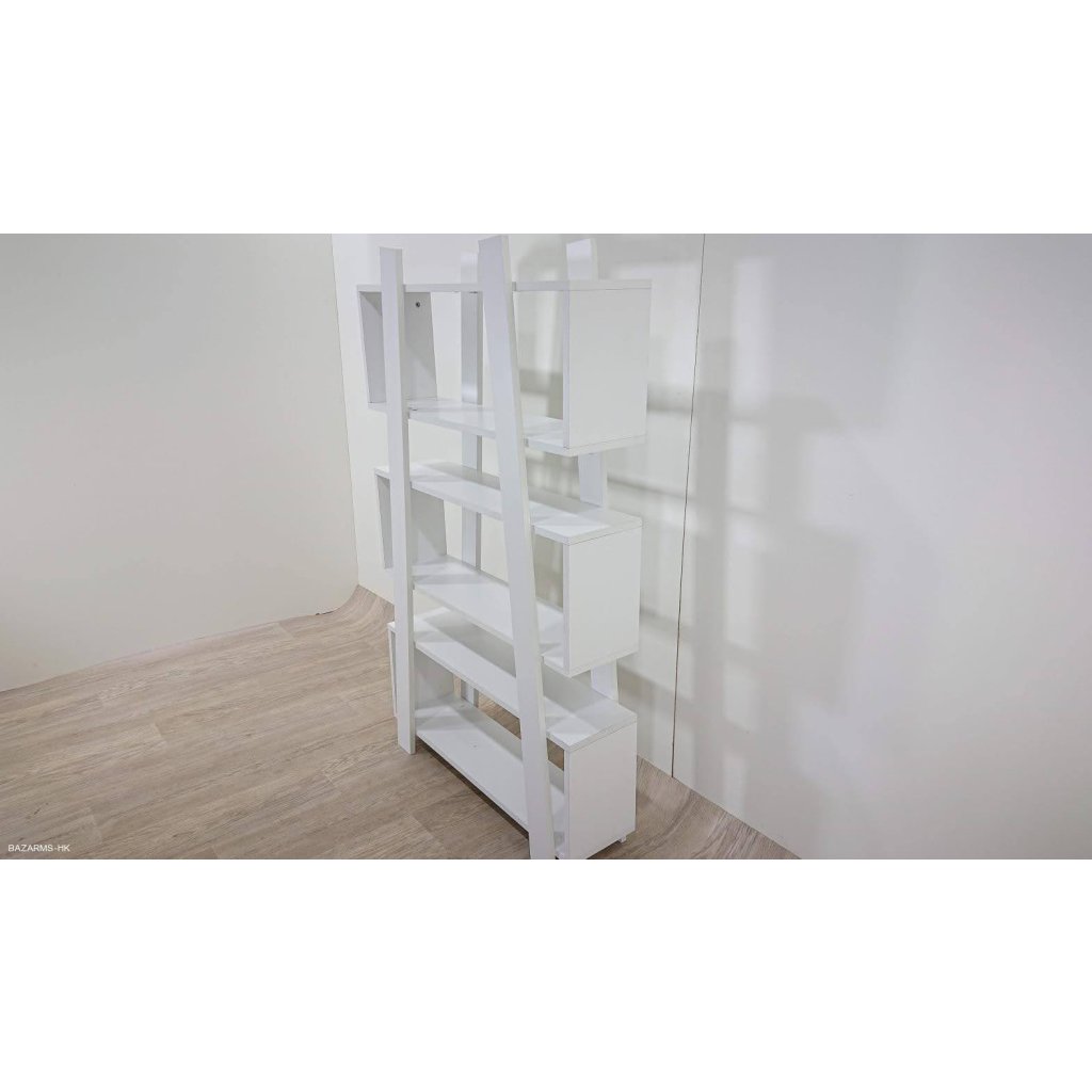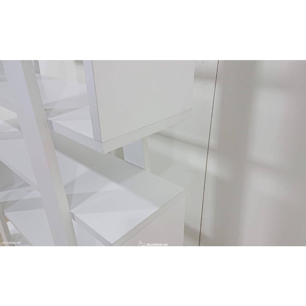 Bílá knihovna Almira, výška 150 cm. Knihovna do moderních interiérů s jednoduchými liniemi. 22 x 150 x 90 cm (hloubka x výška x šířka).