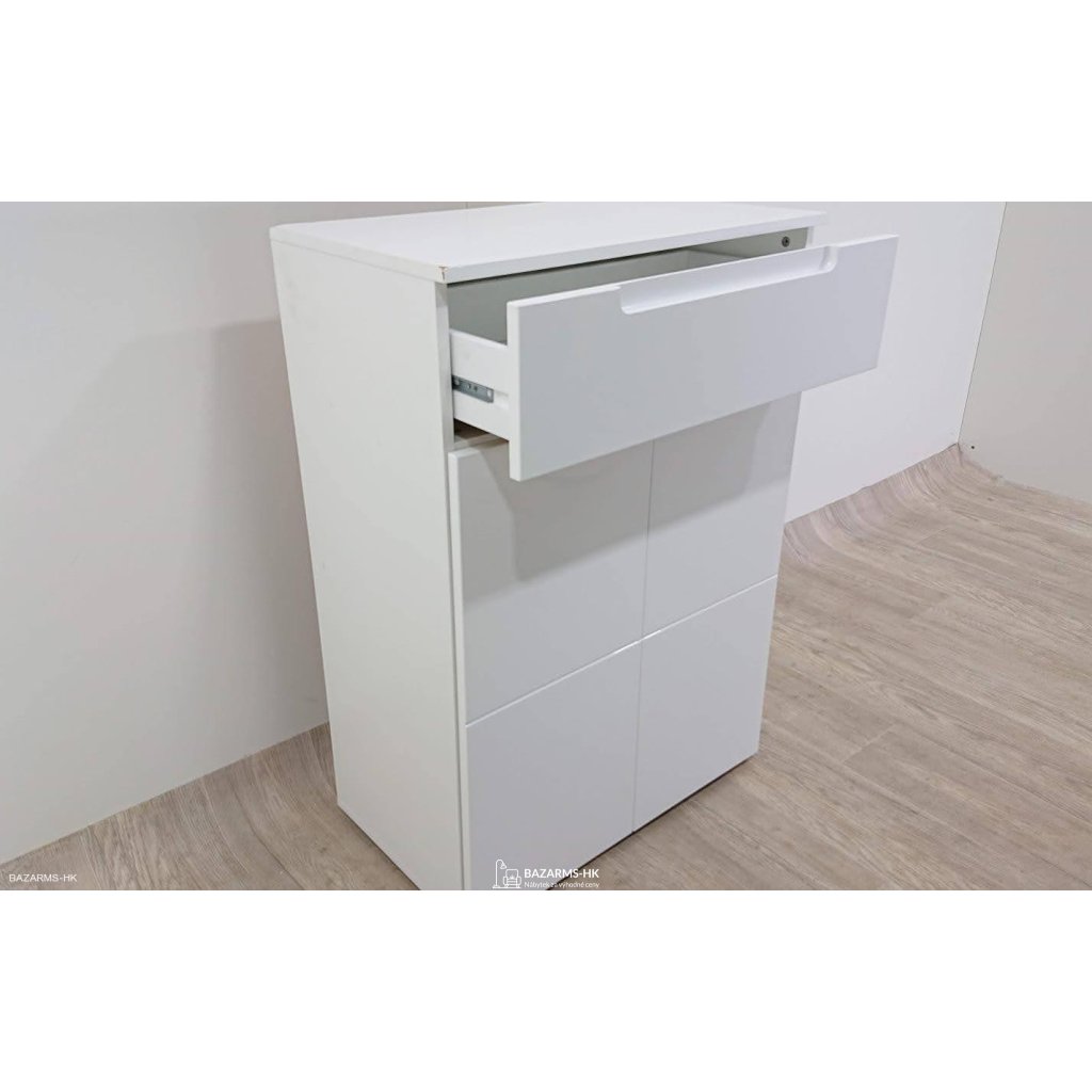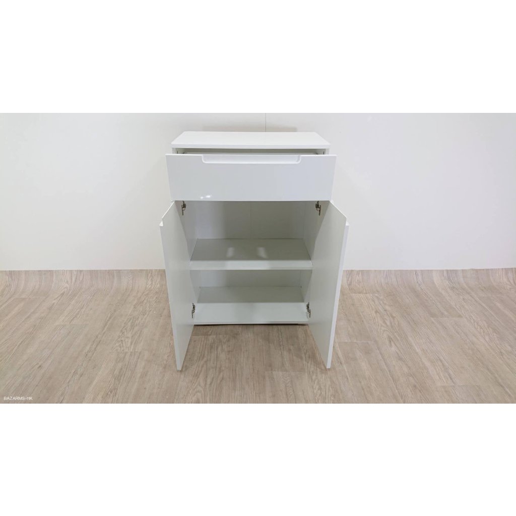 Bílá komoda Szynaka Meble Selene. Moderní lesklá komoda do dětksého pokoje, ložnice, předsíně i obýváku. 70 x 40 x 102 cm (šířka x hloubka x výška).