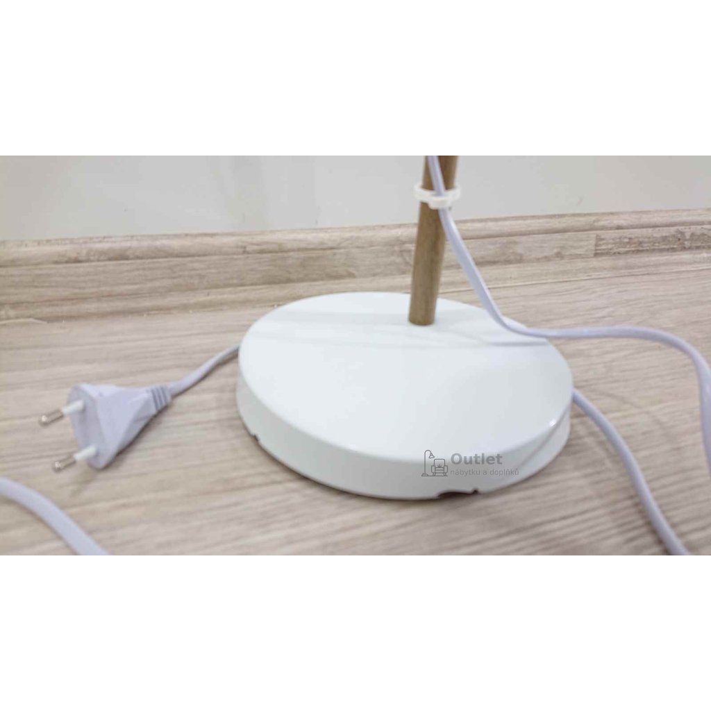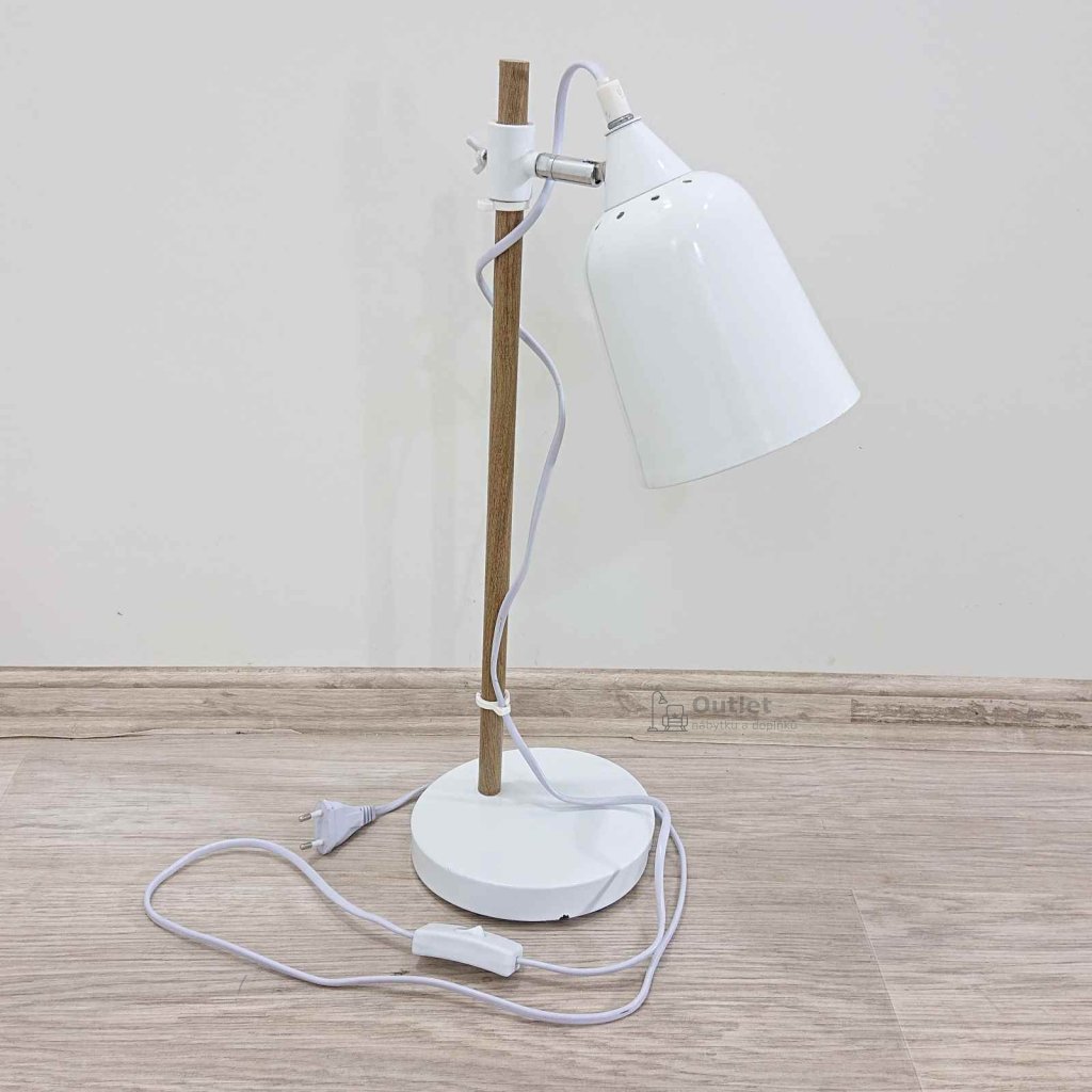 Lampička na psací stůl nebo na noční stolek s naklápěcím stínítkem a také malými držáčky, které uchytí kabel.