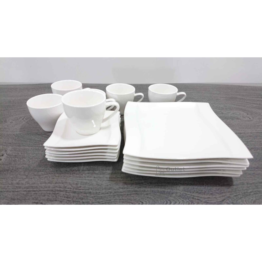 Sada obsahuje: 6x dezertní talířek (21,5x21,5 cm), 6x šálek (220 ml), 6x podšálek (13,5x13,5 cm)