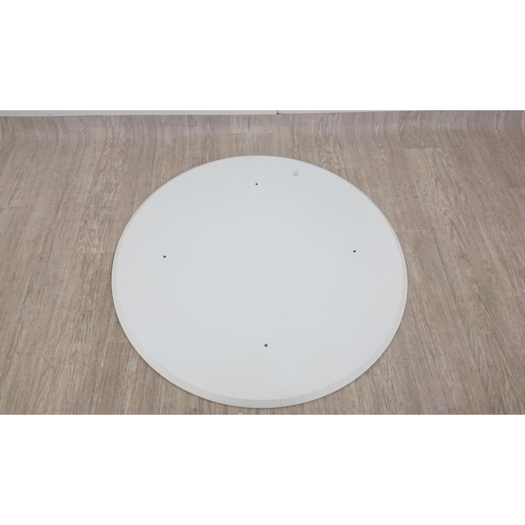 Bílá kulatá deska vhodná pro jídelní stůl.