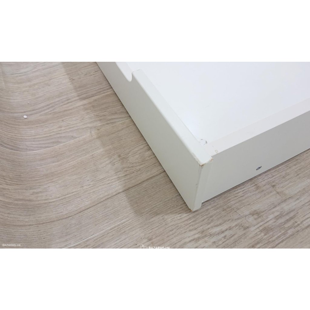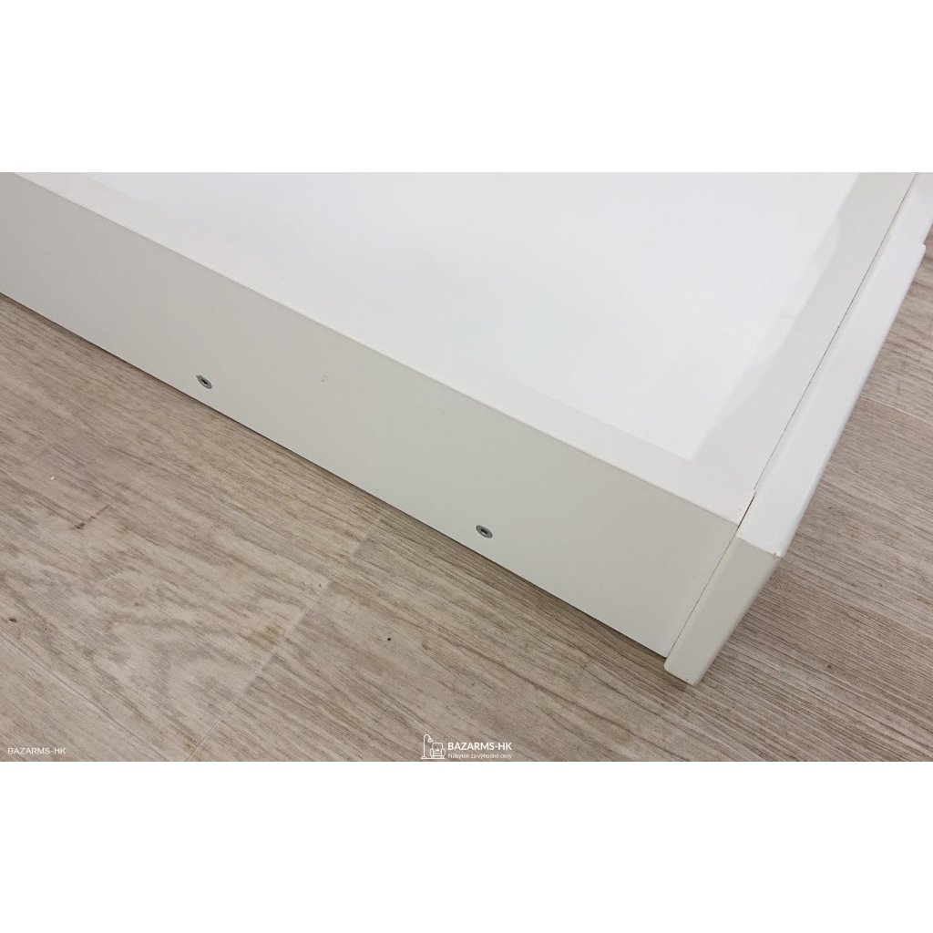 Bílá zásuvka pod postýlku Pinio Moon, 60 x 120 cm. Úložného prostoru není nikdy dost, zvláště pak v dětském pokojíčku. 119 x 14 x 63.5 cm (délka x výška x šířka).