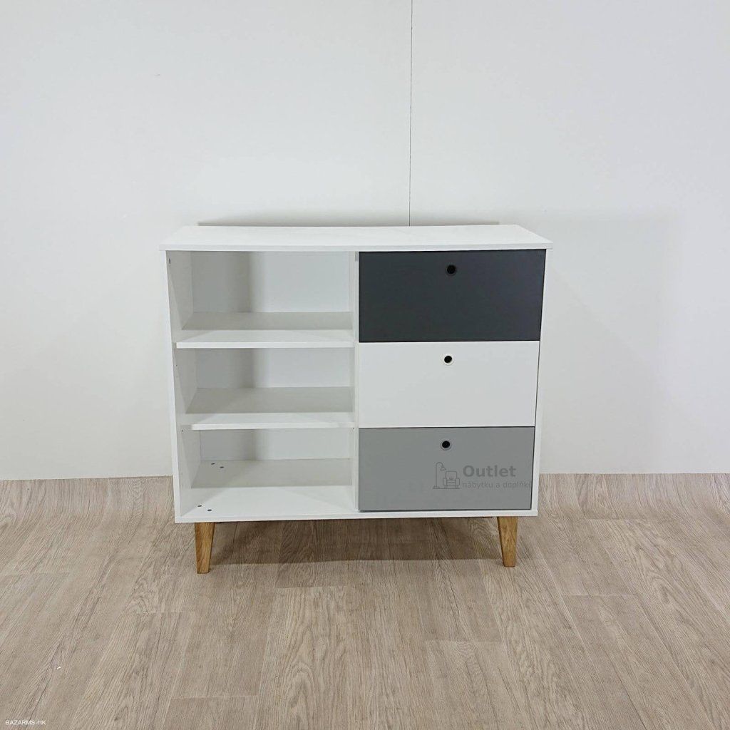 Bílo-šedá komoda Vox Concept. Komoda do pokoje dětí i teenagerů. 103 x 96 x 45 cm (šířka x výška x hloubka).
