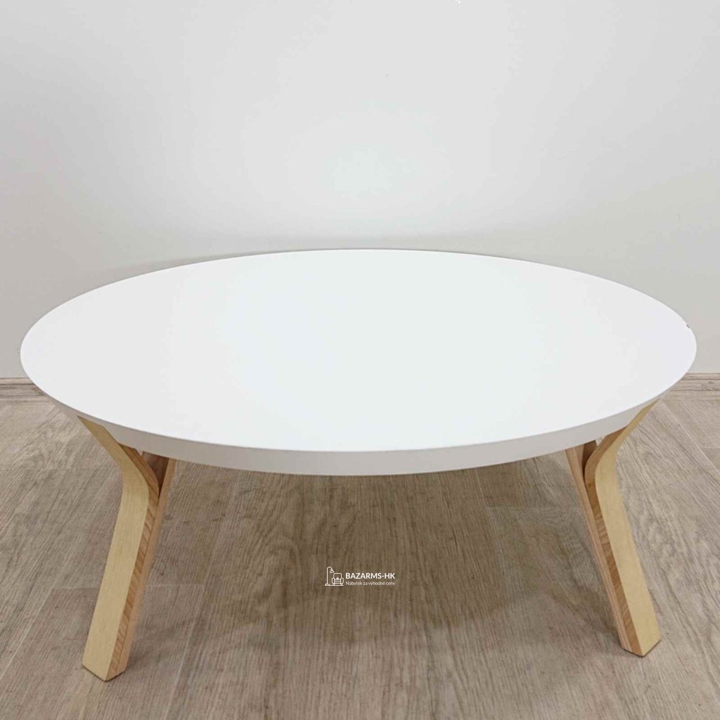 Nizoučký kulatý stolek s velkou deskou skvěle padne do moderního i skandi zařízenho obývacího pokoje před pohovku.