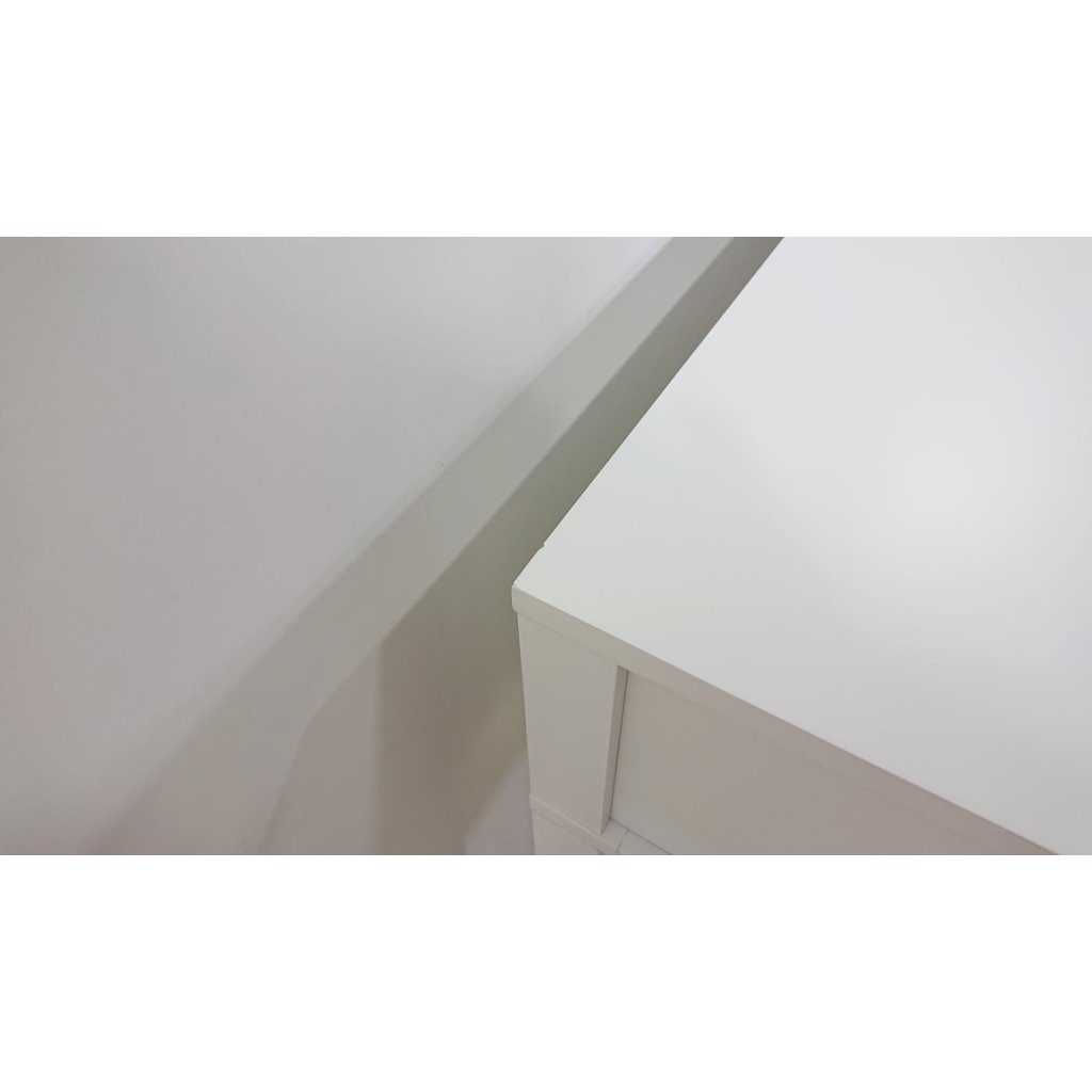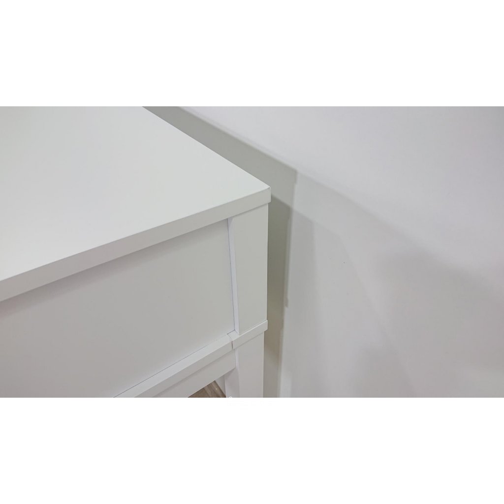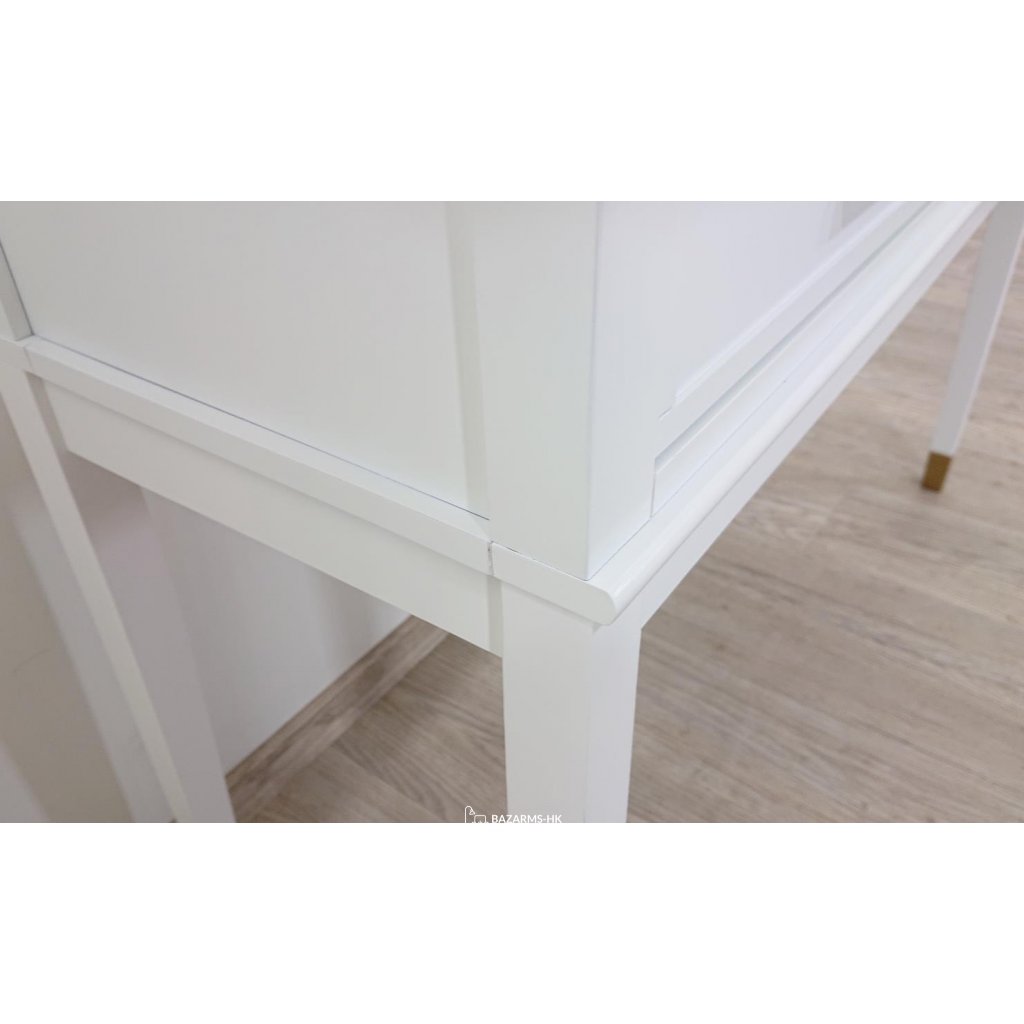 Elegantní bílý odkládací stolek se zásuvkami se zlatými detaily, který využijete v ložnici na líčení nebo v obýváku na umístění fotorámečků. Ke stolku můžete pořídit i pohodlné křeslo nebo židli, a tak ho využijete i jako pracovní stolek.