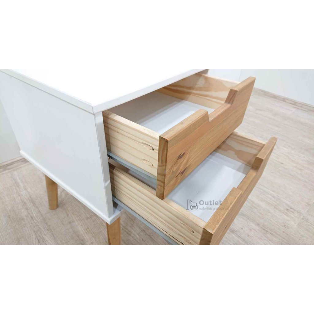 Bílý noční stolek vhodný do ložnice i dětského pokoje. Bílá barva je krásně doplněna o přírodní čílka zásuvek. Tento šuplíkový noční stolek můžete pořídit, pokud máte interiér laděný do skandinávského stylu, ale i pokud holdujete venkovskému bydlení.