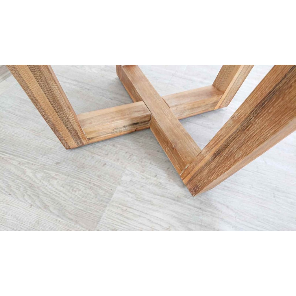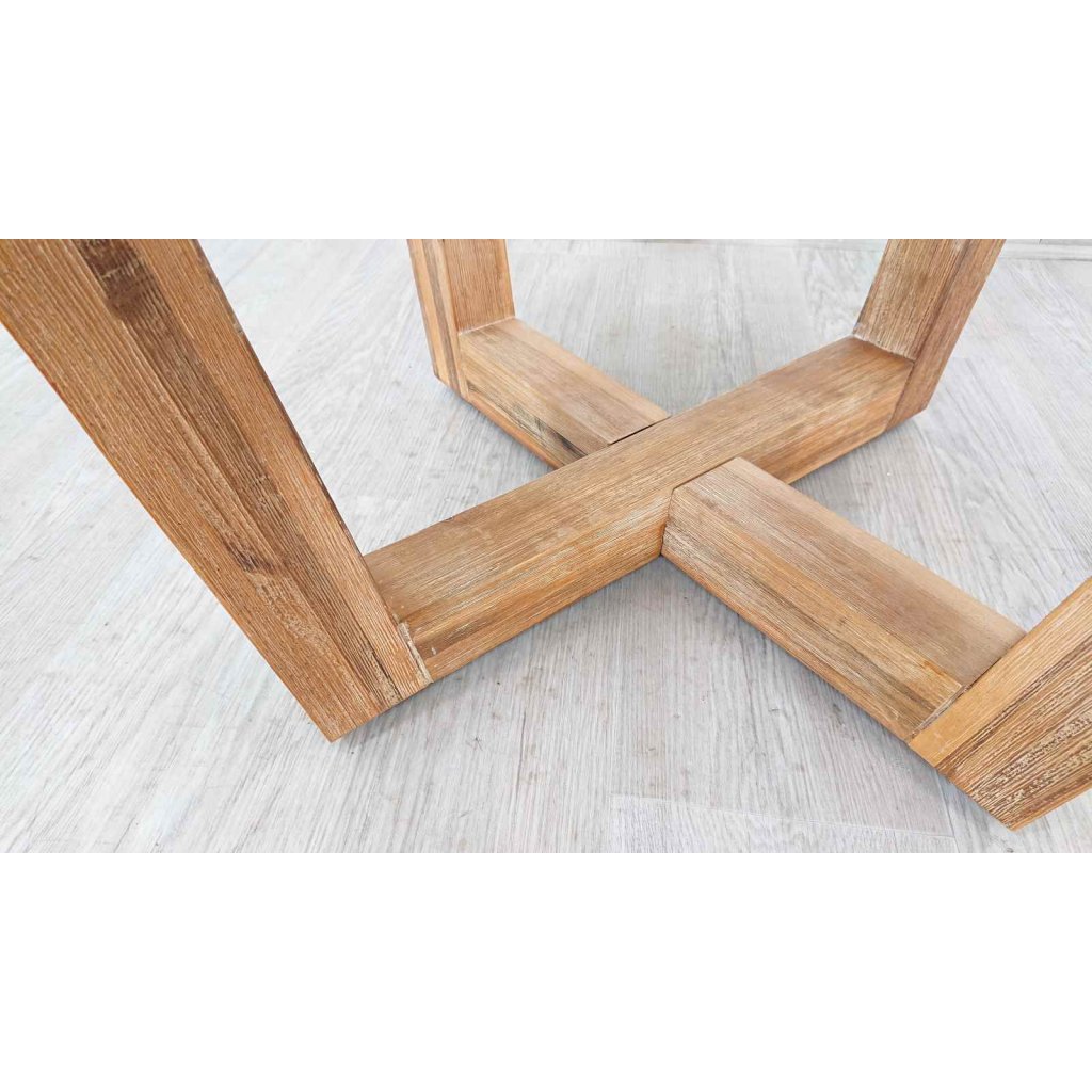 Velký kulatý venkovní stůl pro 4 - 6 osob s dřevěným podnožím. Kvalitní zahradní stůl si vás získá svou stabilitou a mohutnou deskou. Tento stůl jen tak něco nepřevrátí. Velká deska dodává na luxusním vzhledu. Silná deska je z terrazzo cementu, podnoží je dřevěné.