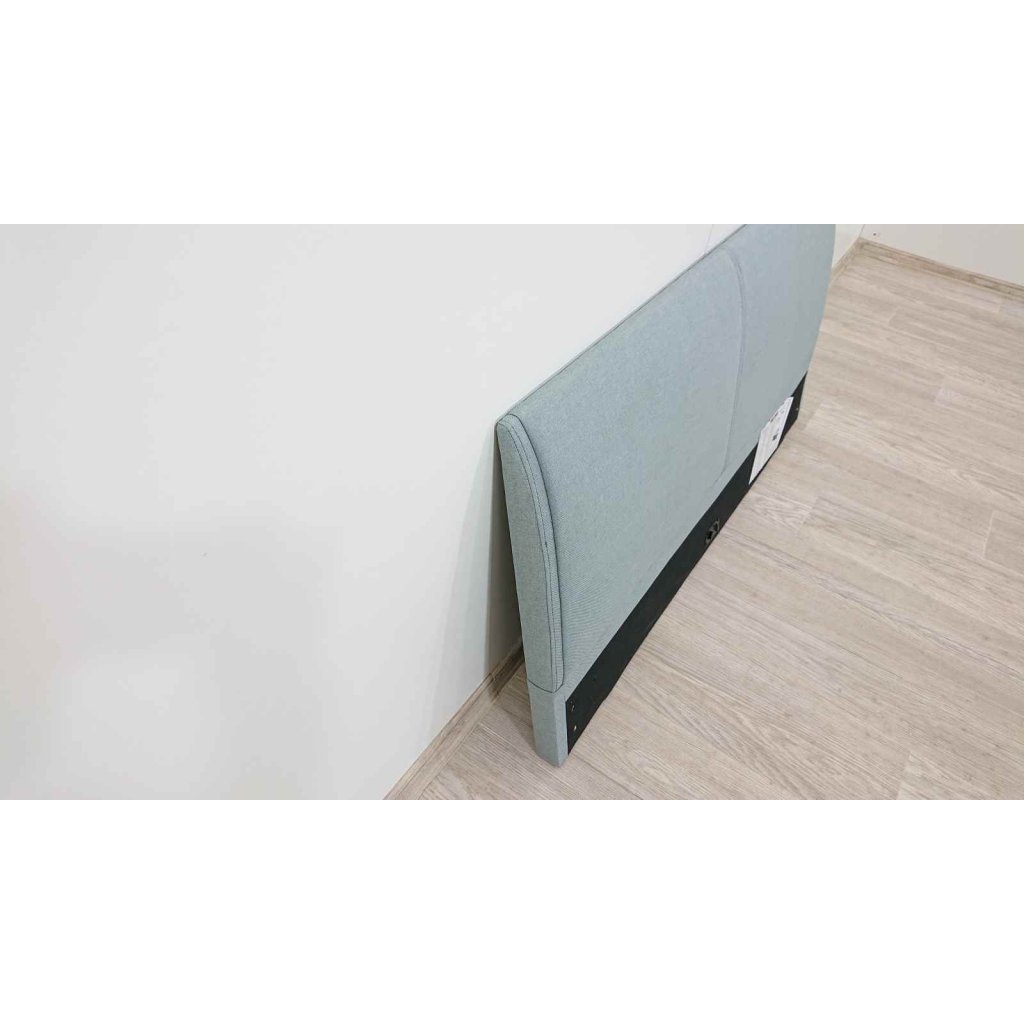 Čelo za postel v šedé barvě s nádechem modrozelené. Už žádná odřená stěna za postelí a nepohodlné opírání - toto čelo vyřeší oba problémy, navíc bude postel vypadat lépe.