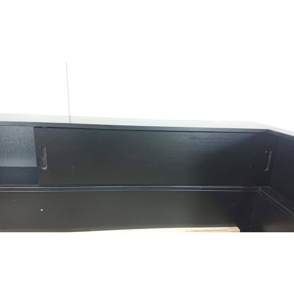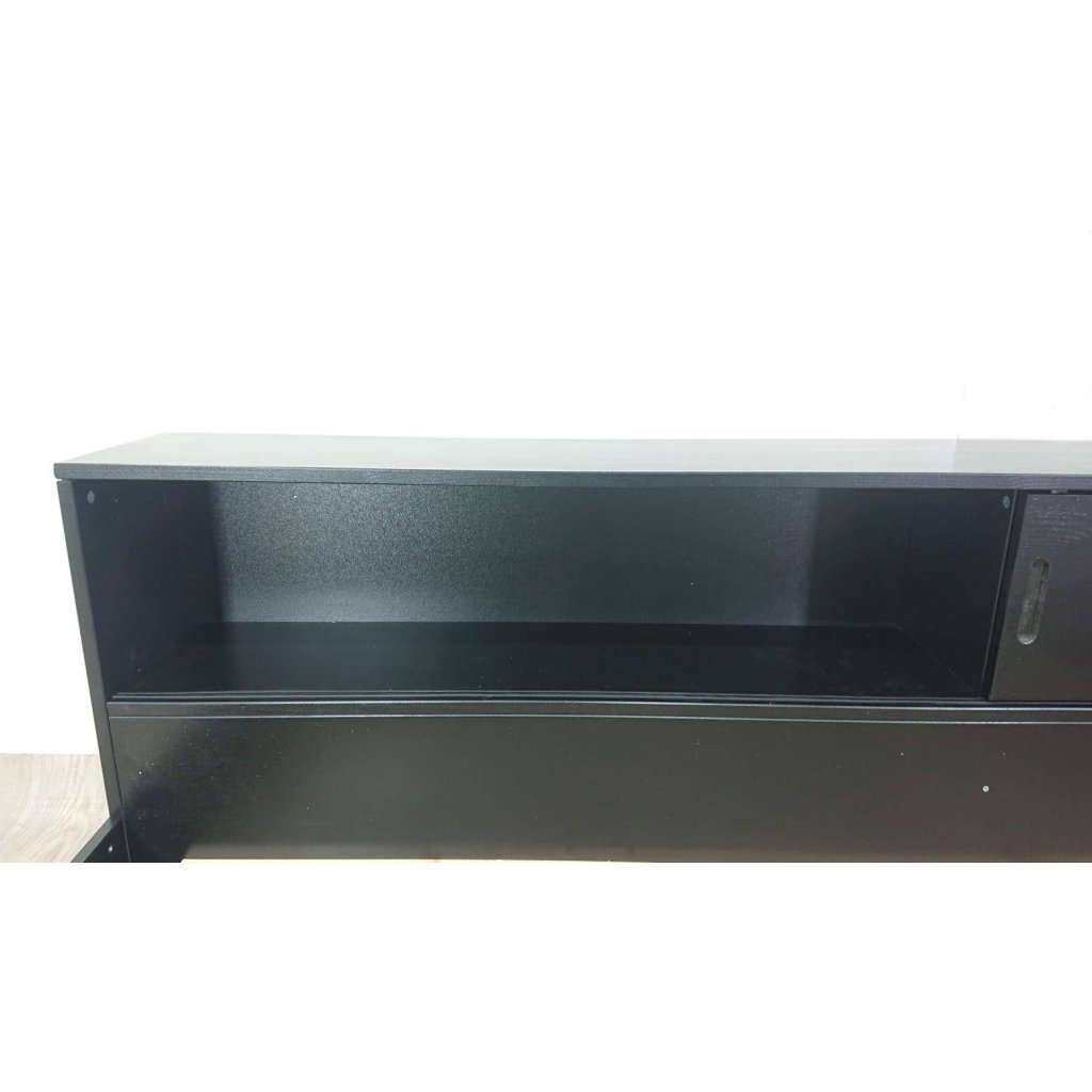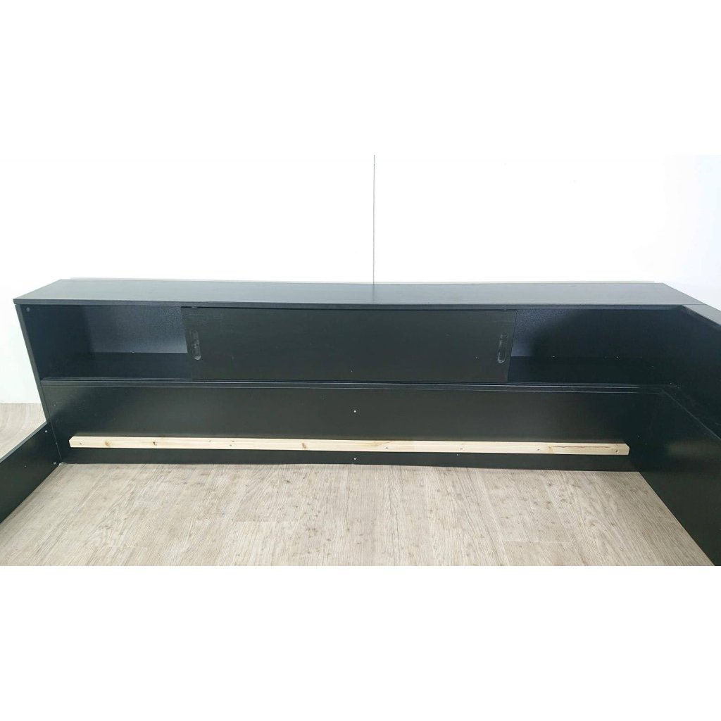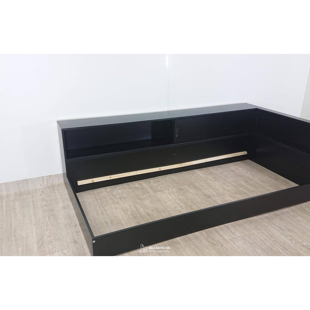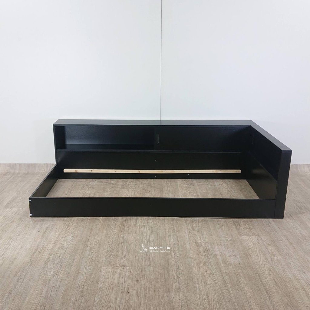 Jednolůžková postel černá, která má navíc i praktickou polici s posuvnými dvířky třeba na knihy.