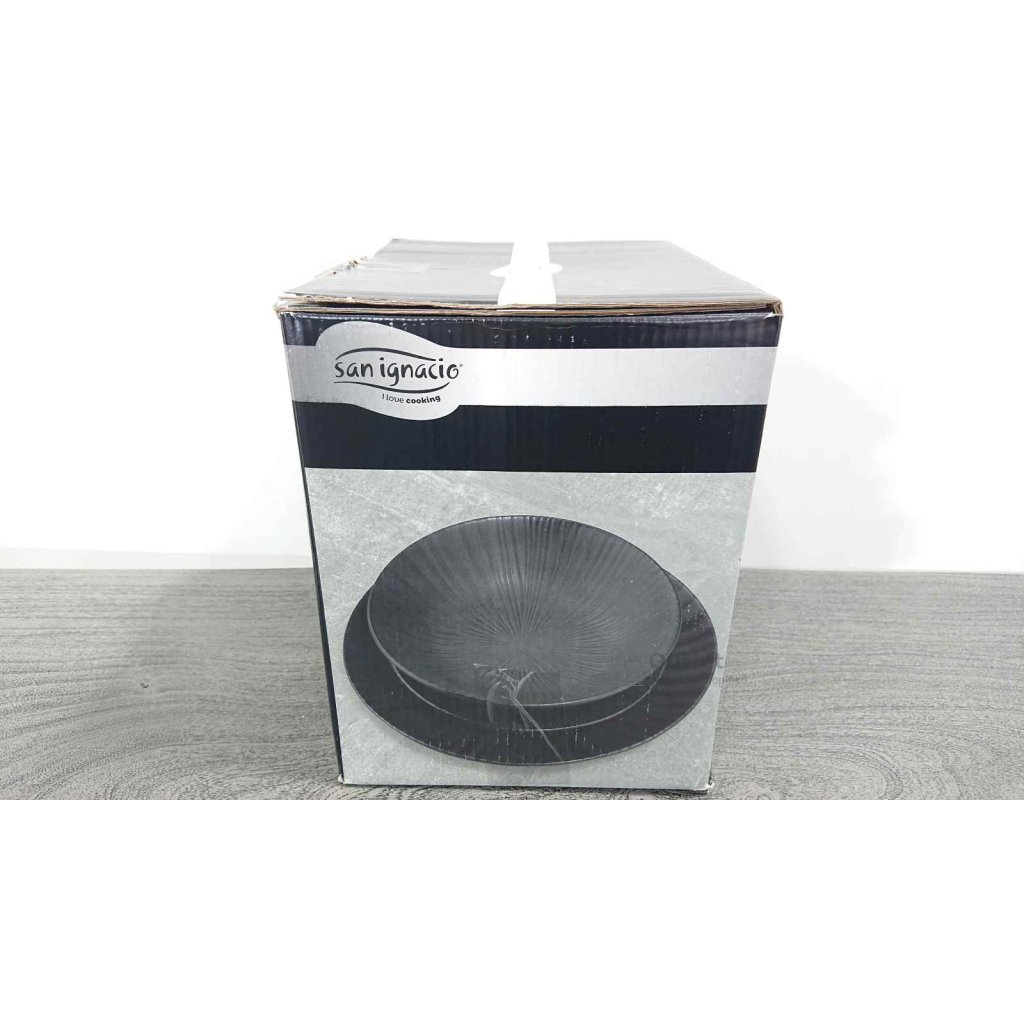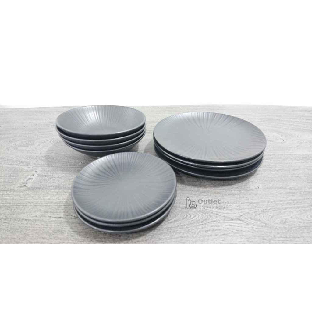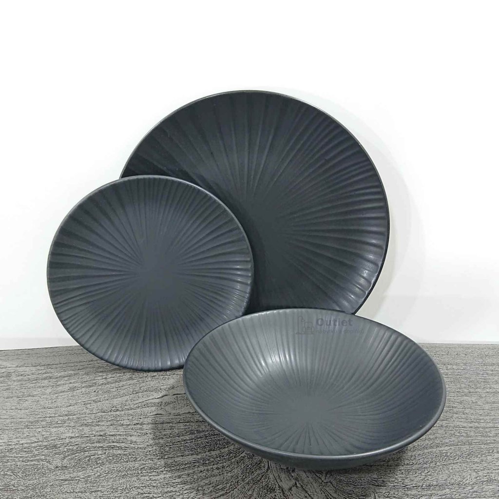 Černý jídelní servis pro 4 osoby působí opravdu luxusním dojmem a povznese vaše stolování. Povrch talířů je členitý dle vzoru, barva je černá matná.