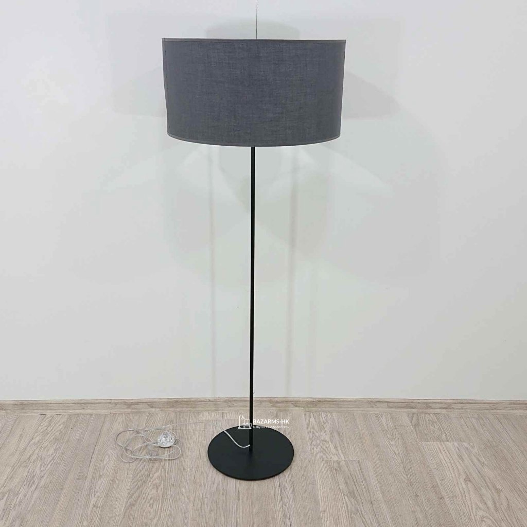 Černá stojací lampa s šedým stínidlem 140 cm.