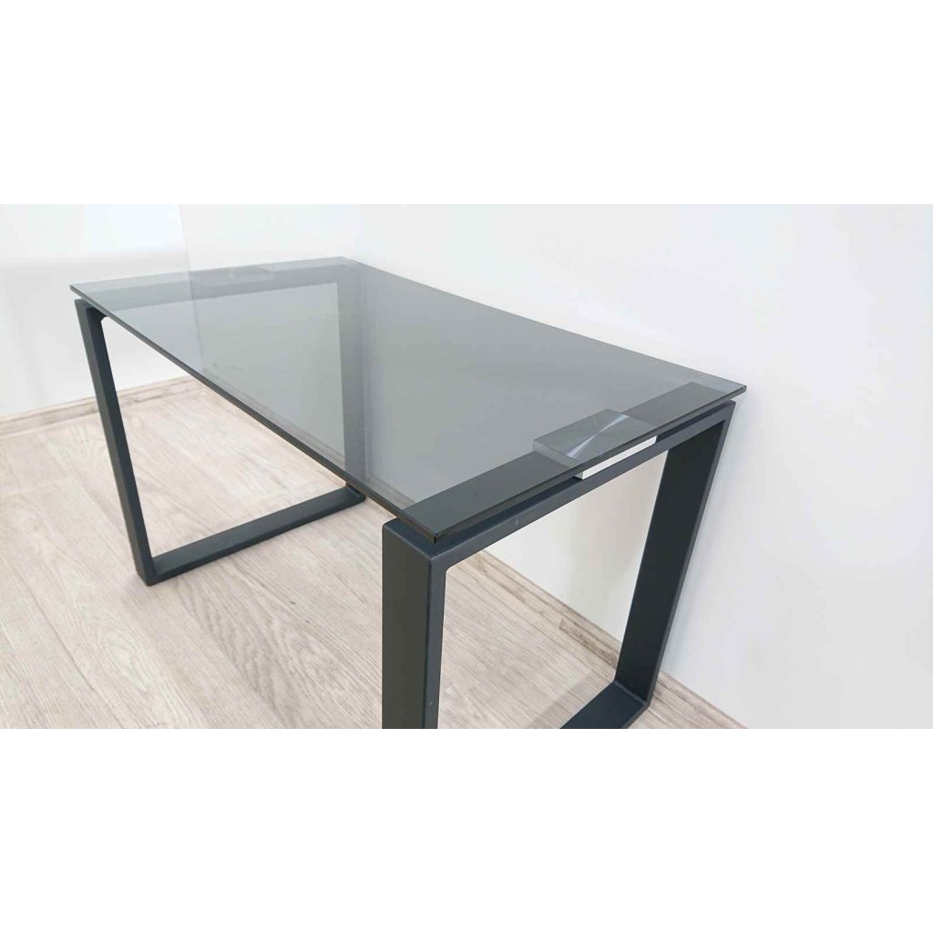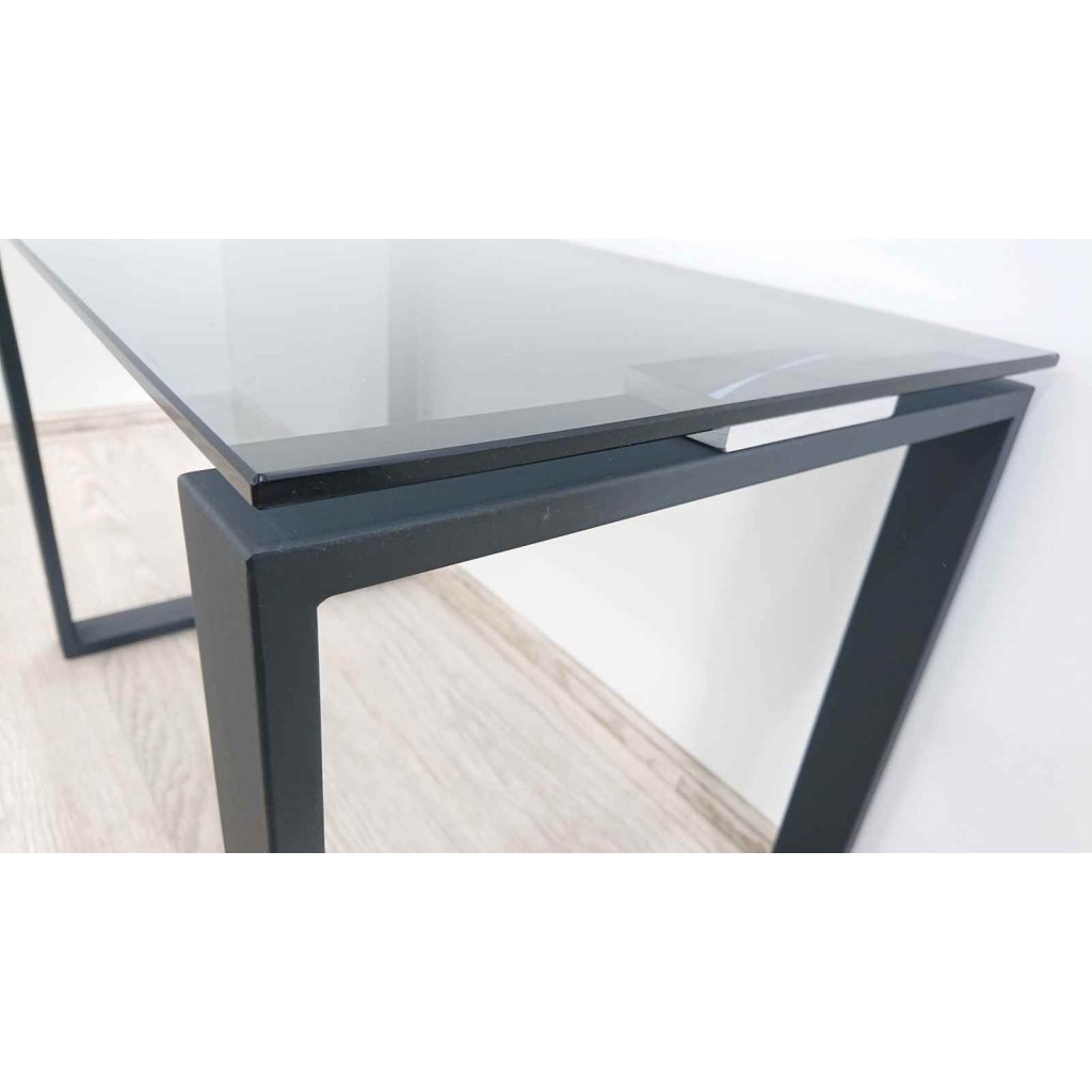 Moderní konferenční stolek s kovovým podnožím a skleněnou deskou. Skleněná deska dodává na eleganci. Tento designový konferenční stolek se hodí před pohovku.