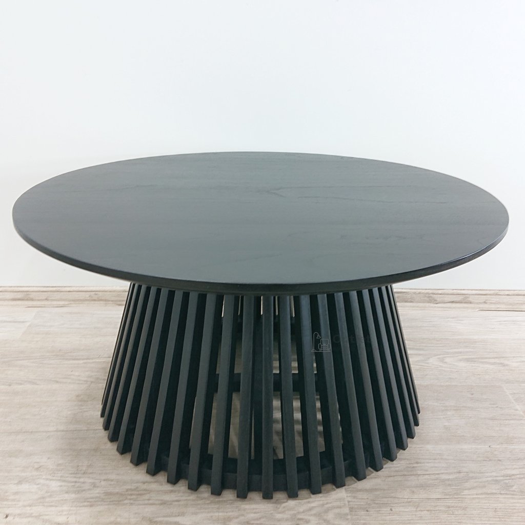Černý konferenční stolek ze dřeva mindi Irune 80 cm Kave Home.