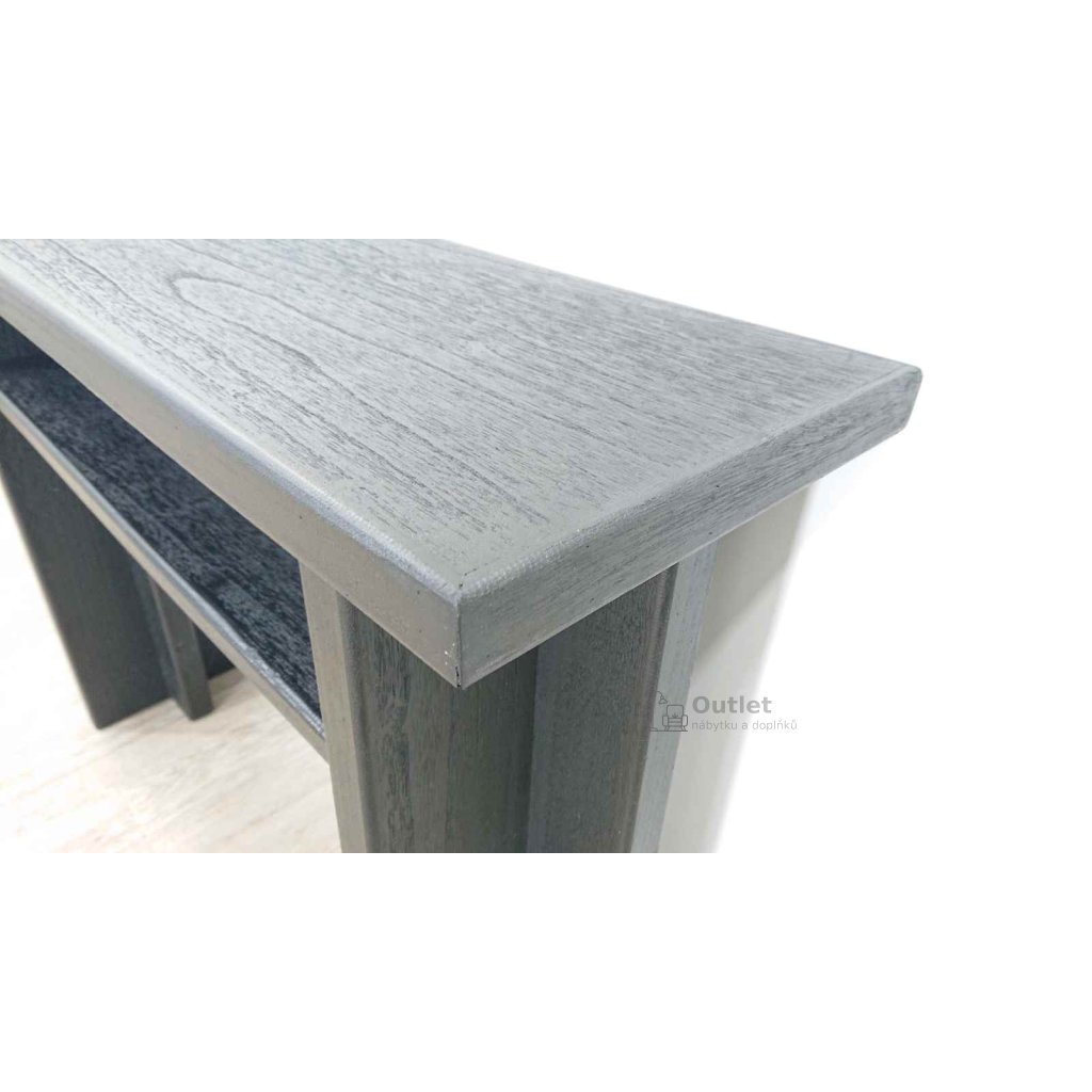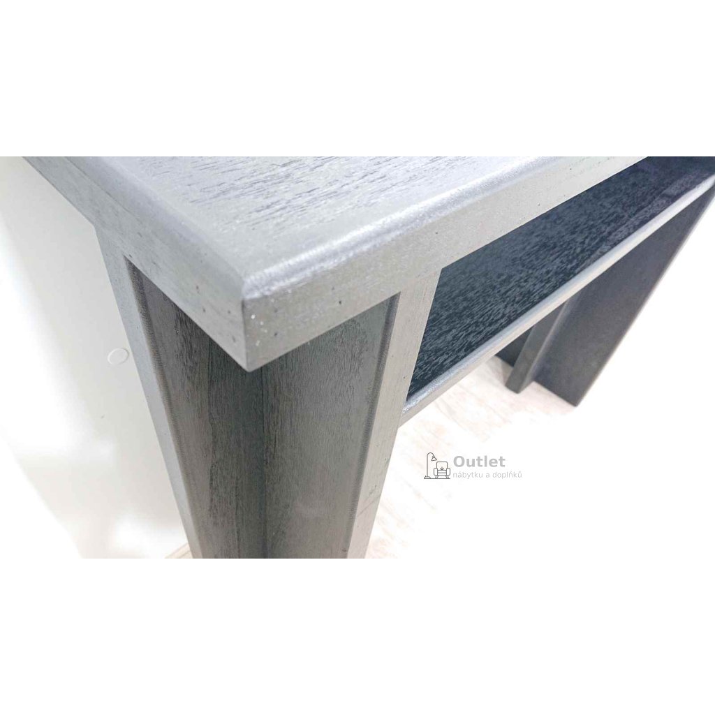 Krásný vyšší stolek s nádhernou strukturou dřeva s policí vhodný do předsíně, obýváku i do ložnice. Na police můžete vyskládat dekorace, květiny, fotorámečky a do spodní police můžete dát třeba úložné boxy.