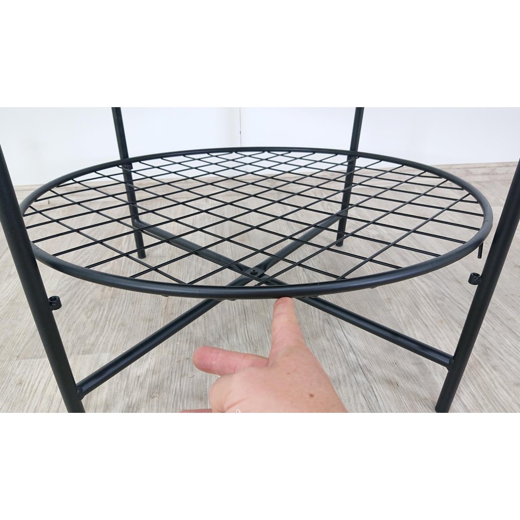 Nepoužité, místy oděrky na konstrukci (deska má dekor z obou stran), u mřížky chybí 2 kolíky pro zasazení do nožky - nemá vliv na funkčnost, deska je dostatečně opřená.
