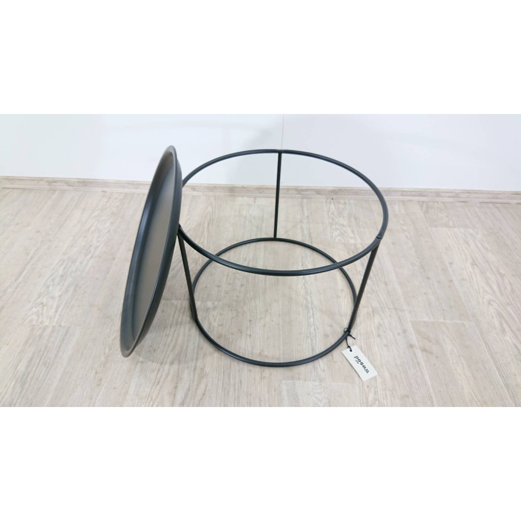 Kovový odkládací stolek laděný do severského stylu. Vrchní deska je na konstrukci volně položená a můžete ji tak využít jako servírovací podnos. Tento malý kulatý stolek využijete v obývacím pokoji vedle křesla, ale i jako noční stolek u postele nebo jako odkládací stoleček v předsíni.