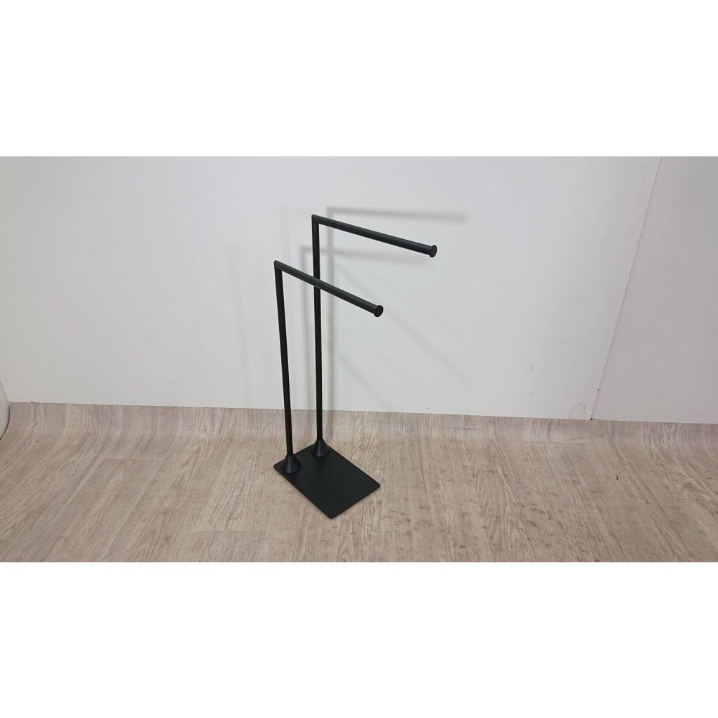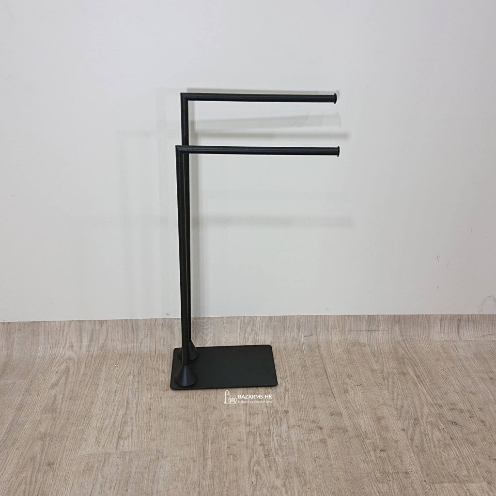Černý designový věšák na ručníky do seversky laděných interiérů.