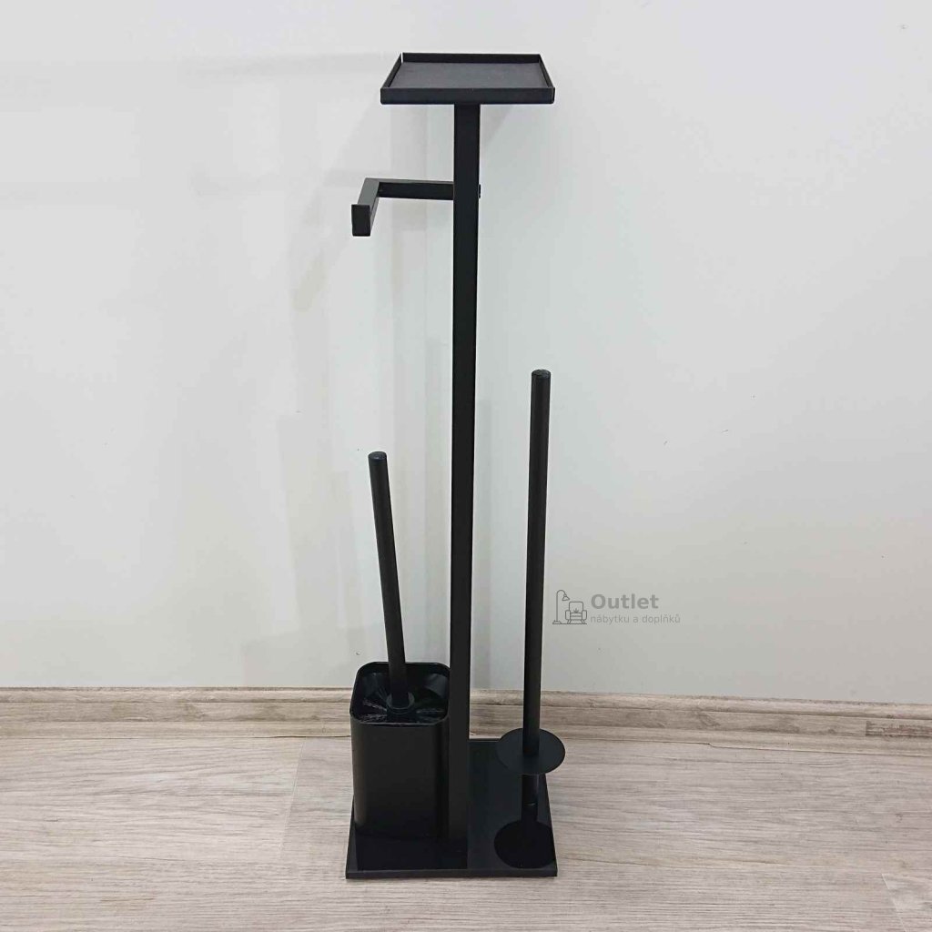Černý WC set do koupelny, který zastane hned několik funkcí a vy tak nemusíte pořizovat několik samostatných stojanů.