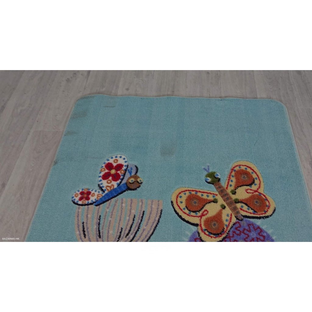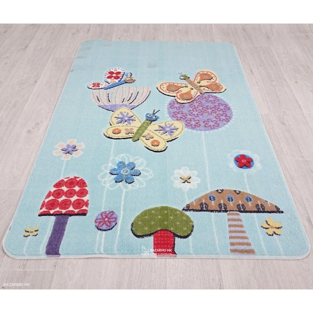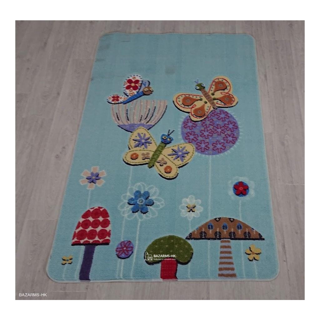 Dětský modrý koberec Confetti Effect, 100 x 150 cm. Veselý, pestrobarevný koberec do dětského pokoje. Antibakteriální úprava, protiskluzová spodní strana, příležitostně lze prát v pračce na 30 °C.