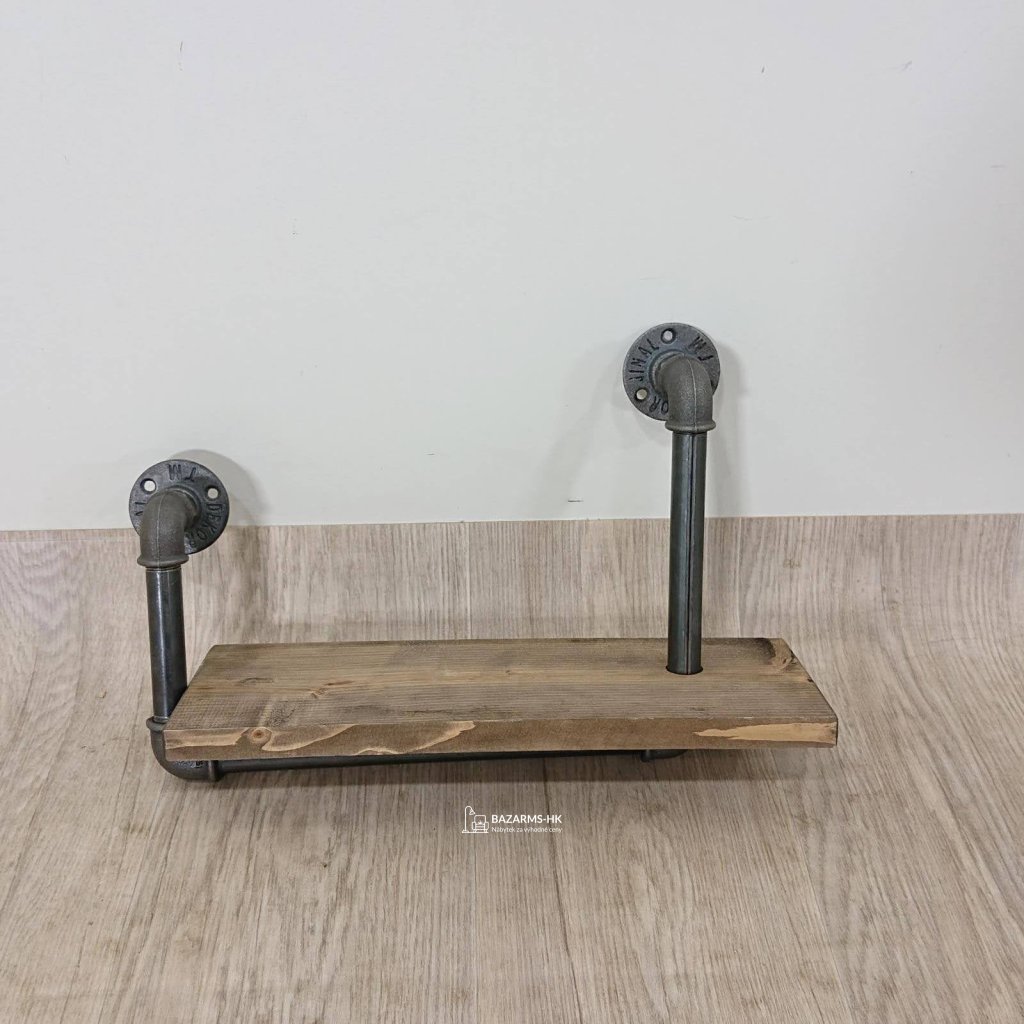 Dřevěná nástěnná police s kovovým potrubím Boruraf Angela.