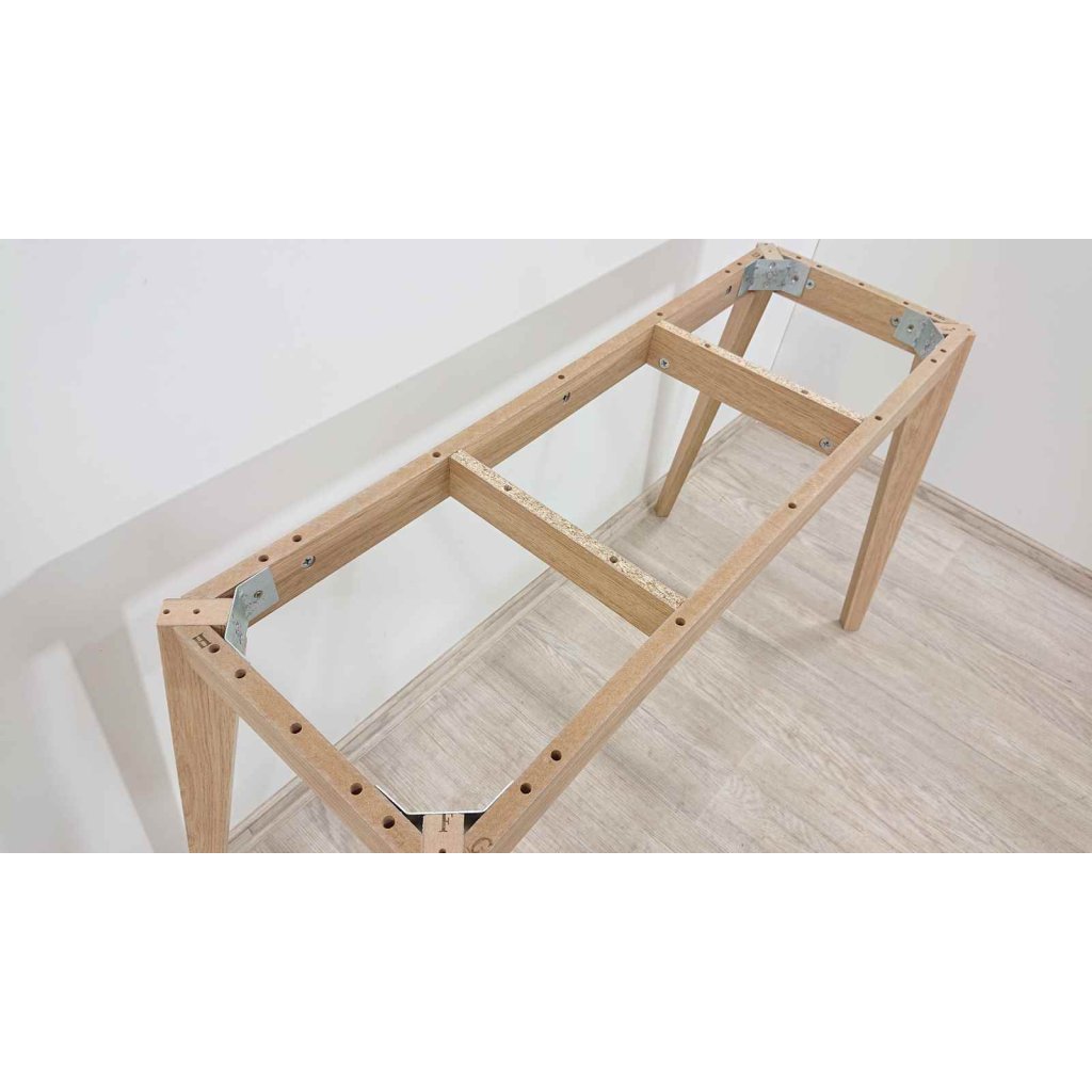 Dřevěná konstrukce vhodná jako základ pro pracovní stolek, konzolový či odkládací.