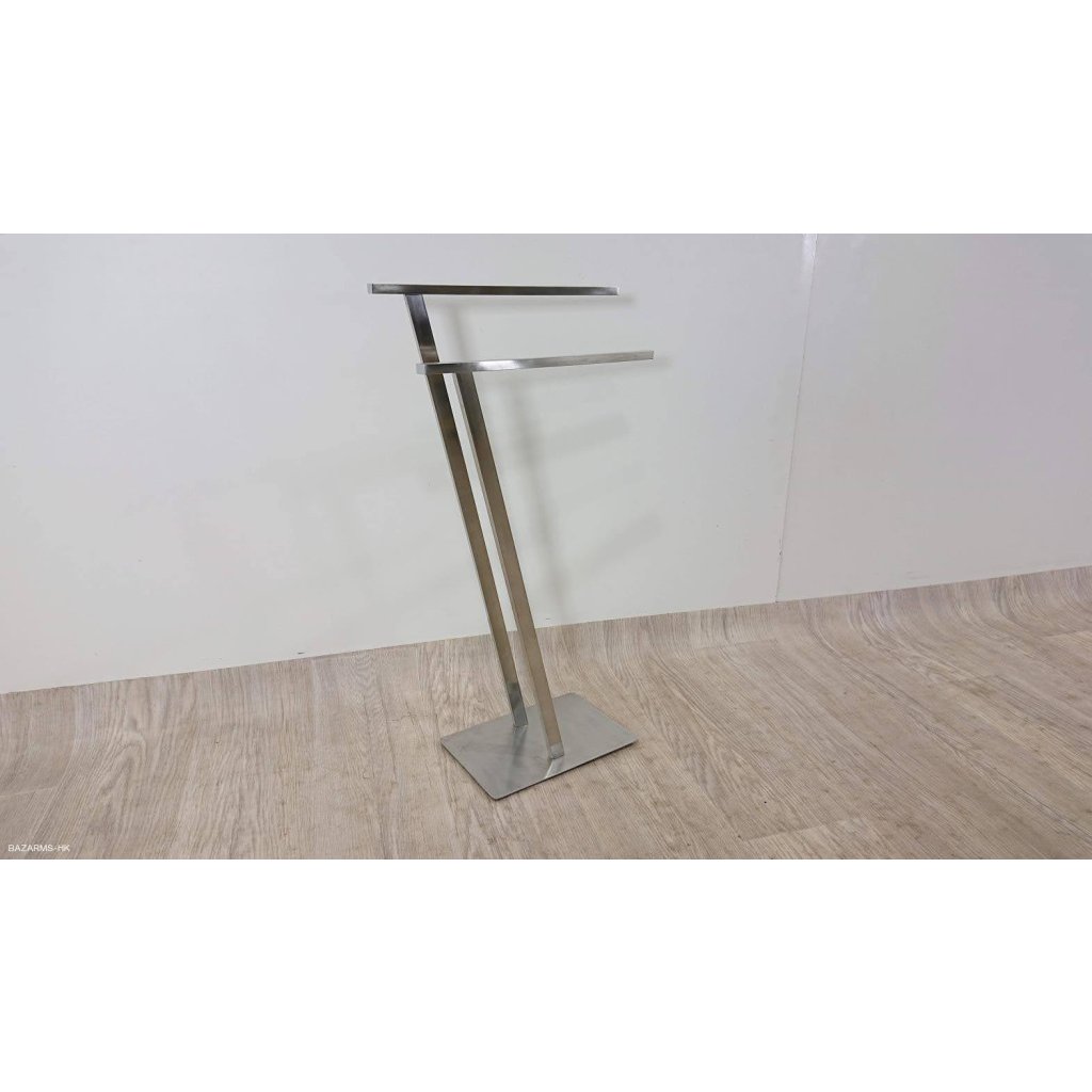 Držák na ručníky z nerezové oceli Wenko Lirio. Stylový stojan na ručníky a osušky do moderních koupelen. 20 x 76.5 x 40 cm (délka x výška x šířka).