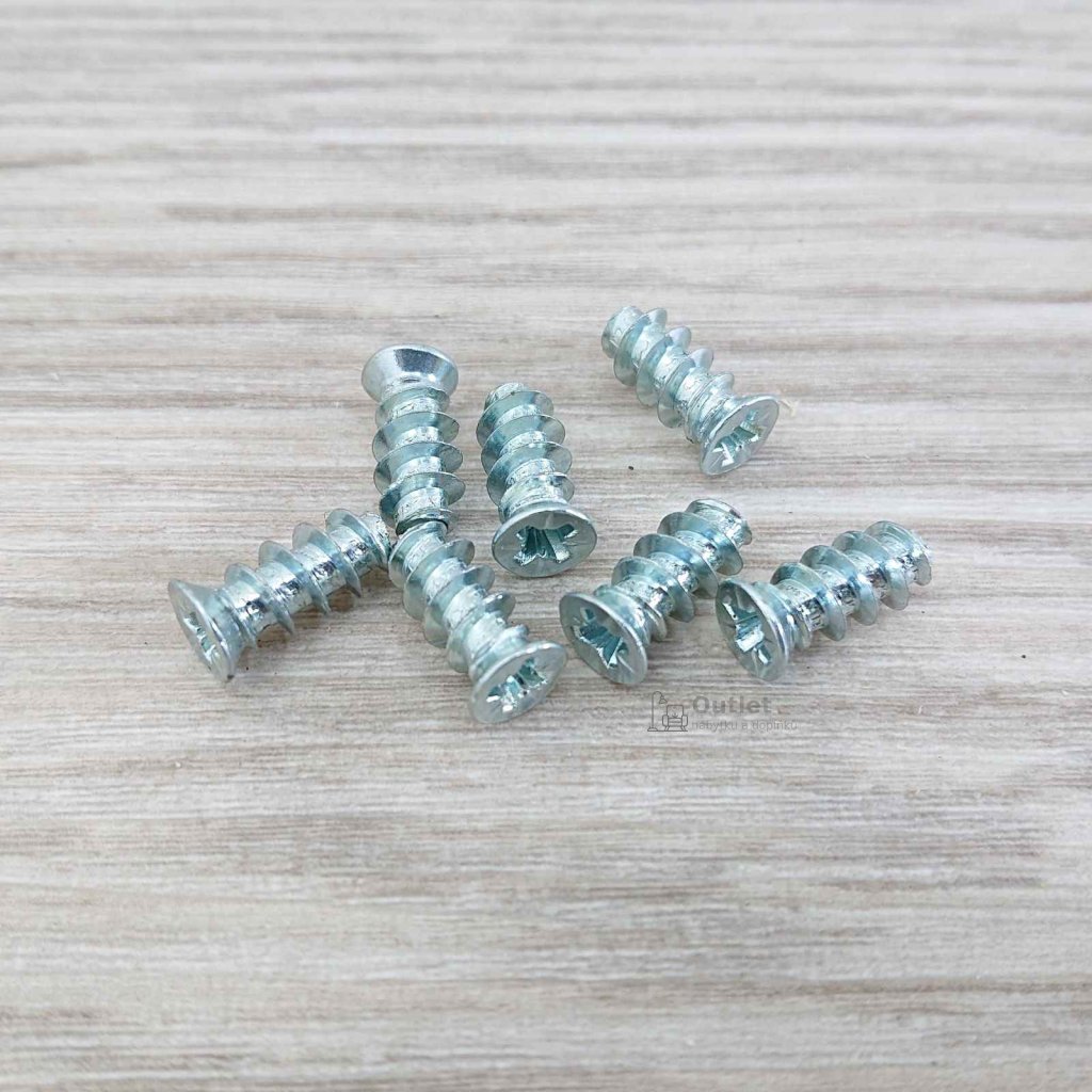 Spojovací šroub vhodný převážně pro uchycení pojezdů u zásuvek a k připevnění pantů.