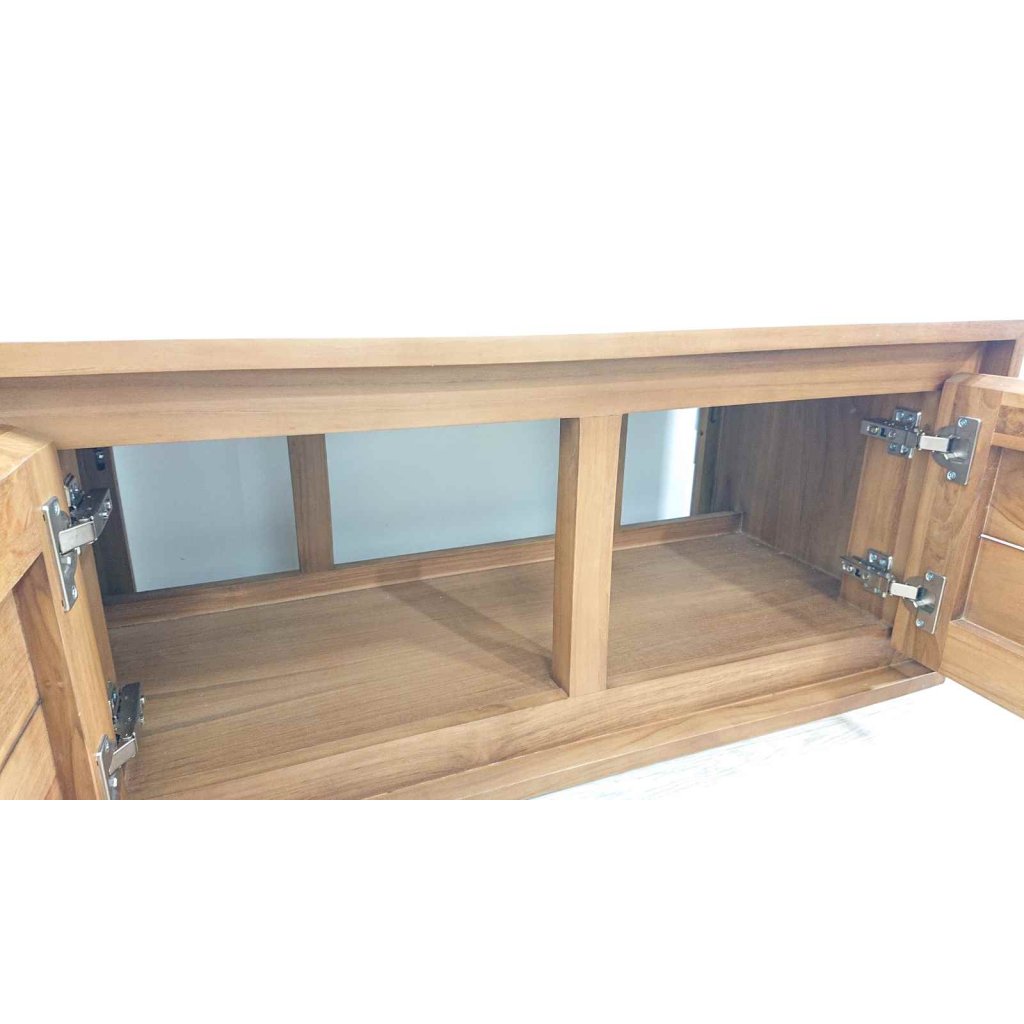 Úžasná koupelnová umyvadlová skříňka, která povznese celou koupelnu na vyšší úroveň. Je to opravdu krásný kousek. Skříňka je určena k zavěšení na stěnu. Masivní teakové dřevo je výbornou volbou do seversky laděných i boho interiérů. Dvířka jsou opatřena tlumeným dovíráním.