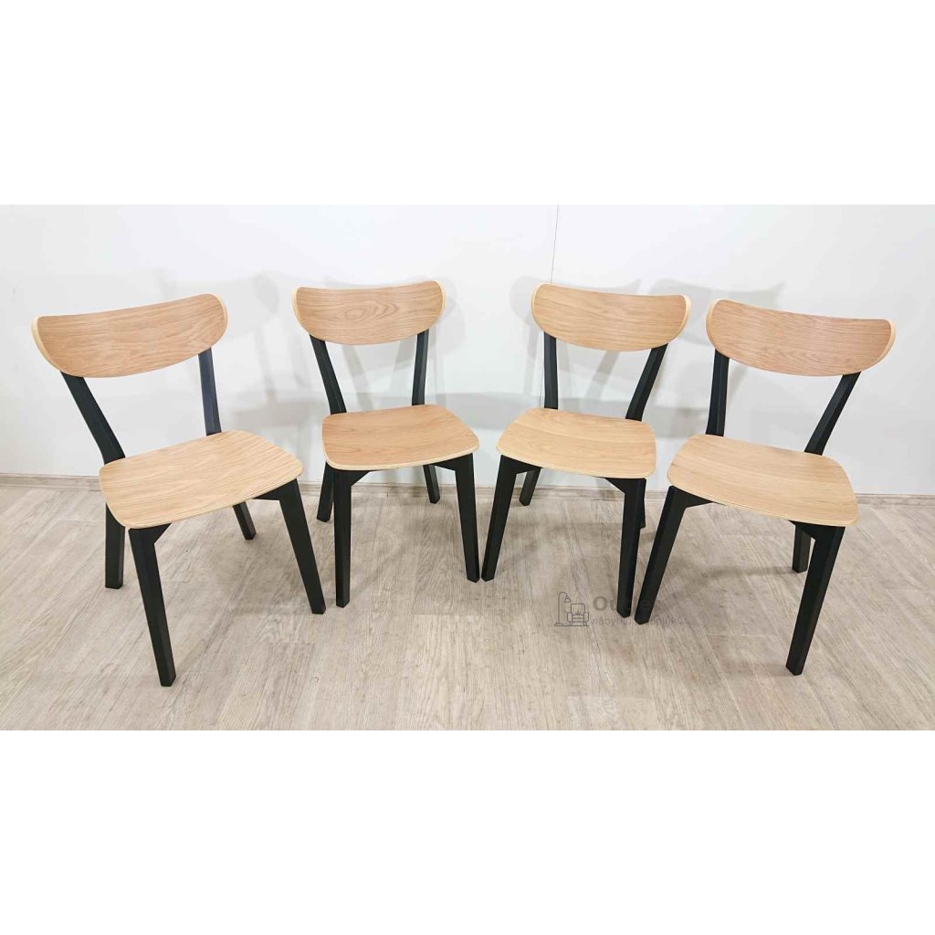 Moderní jídelní židle v nadčasovém provedení. Hodí se do seversky laděných jídelen k dubovému jídelnímu stolu. Černá barva v kombinaci s dubovým dekorem působí elegantně a snadno se kombinuje s ostatním vybavením. Židle můžete doplnit o sedáky či kožešinky.