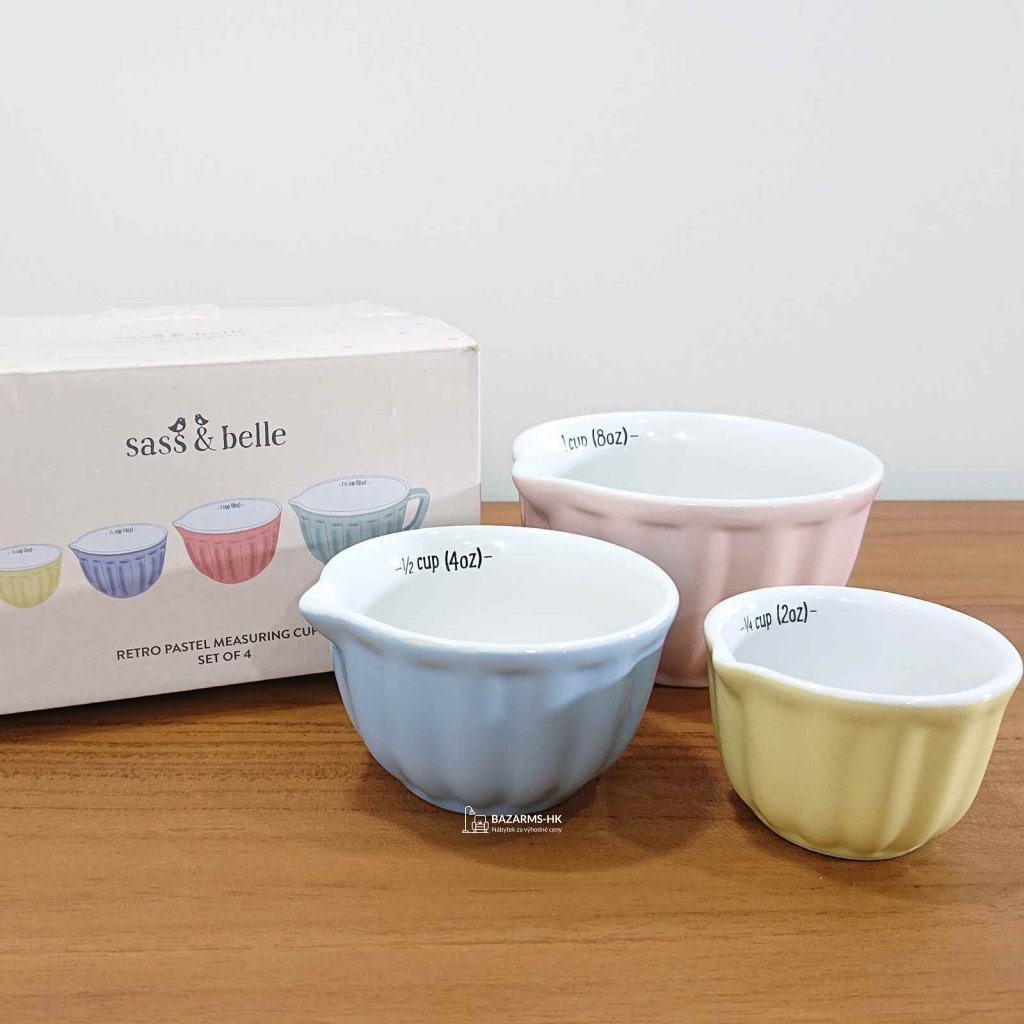 Nádherné kuchyňské odměrky v pastelových barvách laděné do retro stylu. Sada obsahuje odměrky o obsahu 1 hrníček, 1/2 hrníčku a 1/4 hrníčku. Jsou tak krásné, že je určitě neuklízejte do šuplíku, ale nechte je vystavené na lince nebo na poličce.