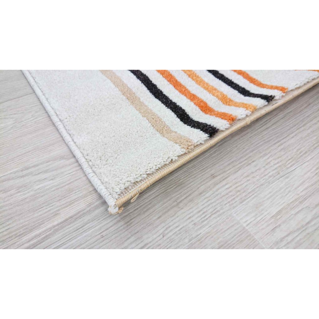 Béžový koberec s detaily v oranžové barvě vhodný před pohovku ale i do ložnice vedle postele nebo do předsíně. Dopřejte si teplo od nohou při sezení v křesel nebo na gauči.