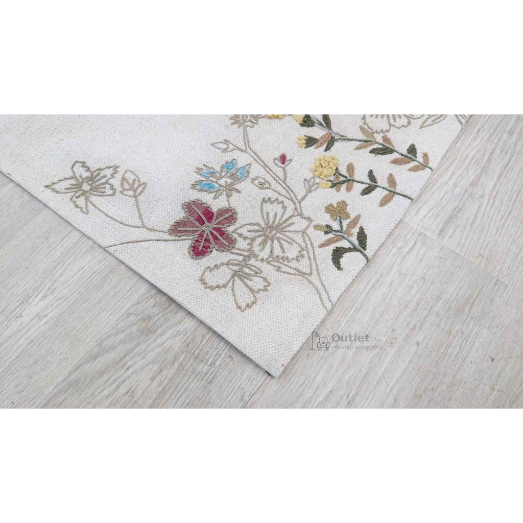 Velký béžový koberec zdobený lučními květinami krásně zabere celou plochu před sedačku pod konferenčním stolkem. Díky němu pak budou nohy pěkně v teple na příjemném podkladu místo studené podlahy. Pestré barvy květin rozzáří místnost.