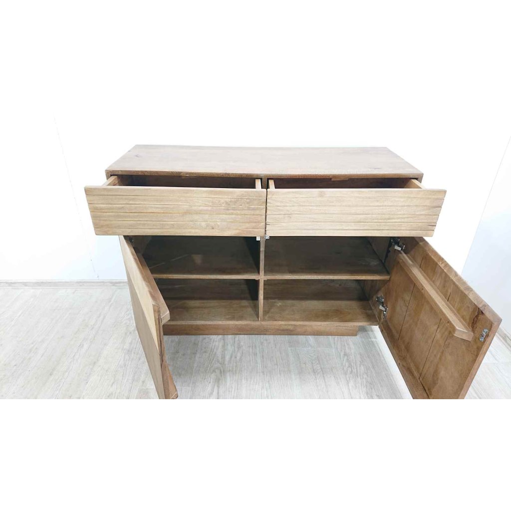 Naprosto fantastická dřevěná komoda se 2 šuplíky, dvířky a policemi uvnitř vás uchvátí na první pohled. Je opravdu kvalitní a bytelná. Tato skvělá skříňka vnese nádech exotiky k vám domů..