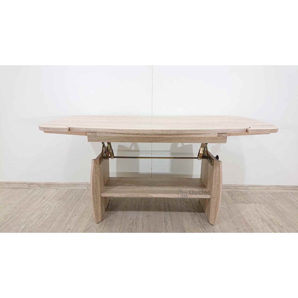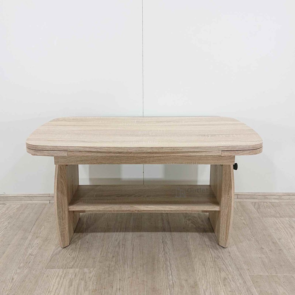 Moderní rozkládací a výškově stavitelný konferenční stolek k pohovce, s odkládací plochou. Desku lze zvětšit o rozkládací desky z obou stran a výšku lze nastavit pomocí páčky.