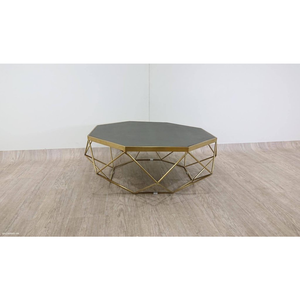Nádherný stolek s elegantní zlatou konstrukcí uchvátí na první pohled.