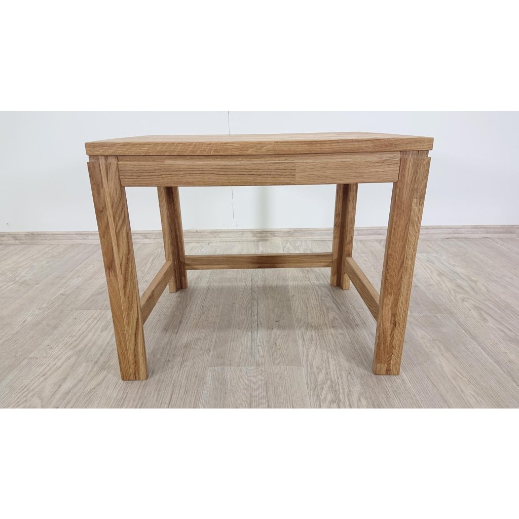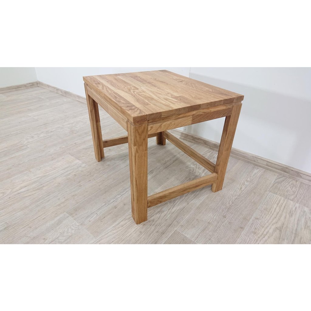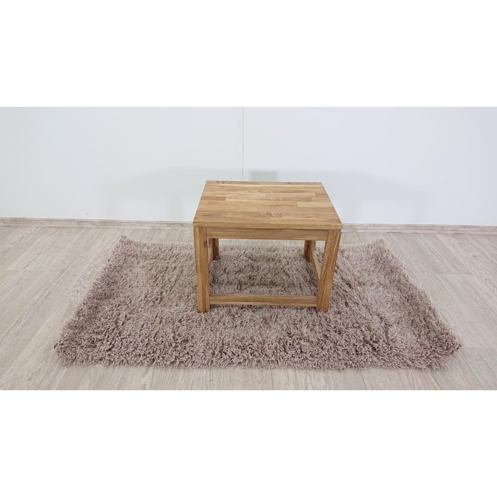 Dřevěný odkládací stolek k pohovce v jednoduchém provedení.