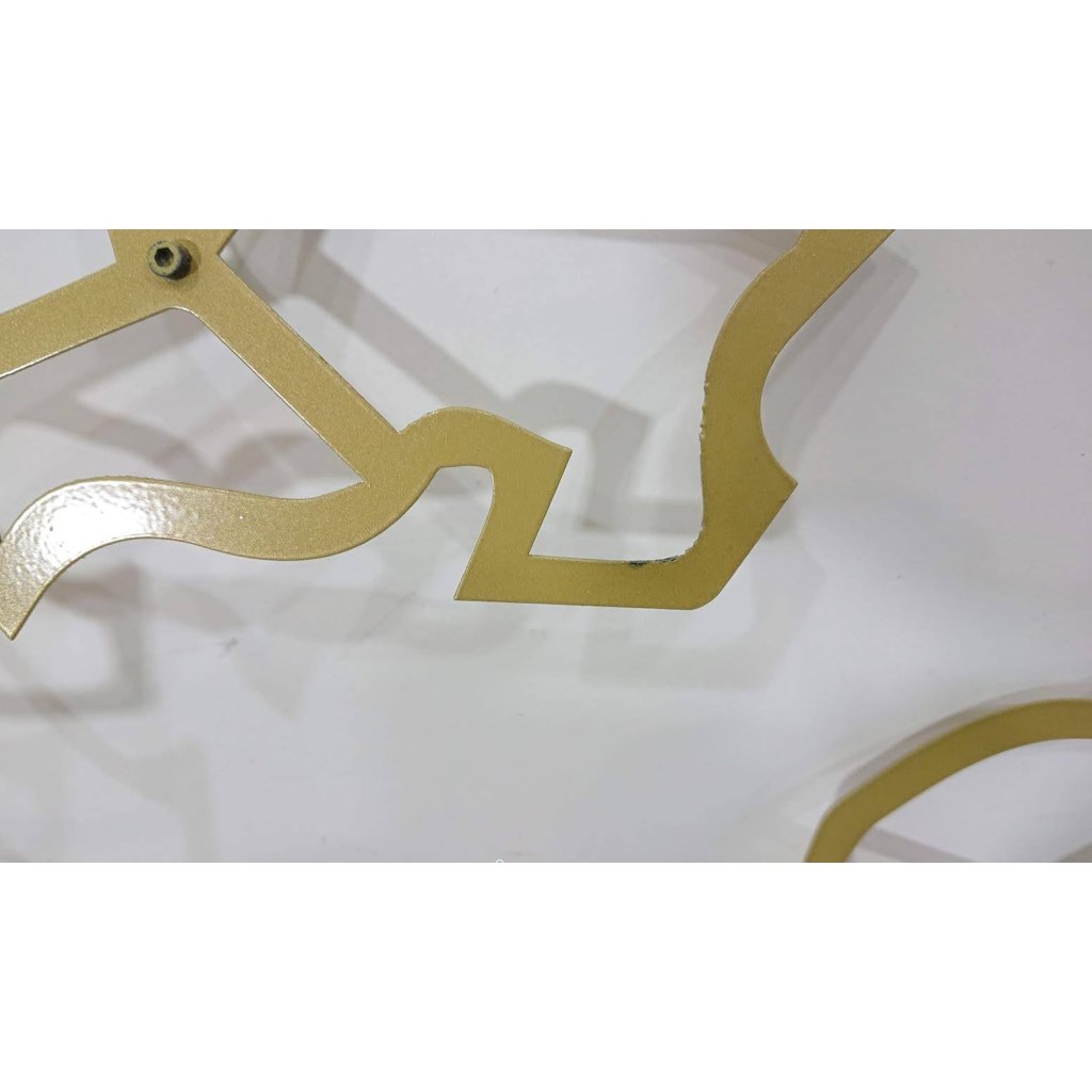 Božská kovová dekorace na stěnu ve zlaté barvě, která potěší nejen vášnivé cestovatele.