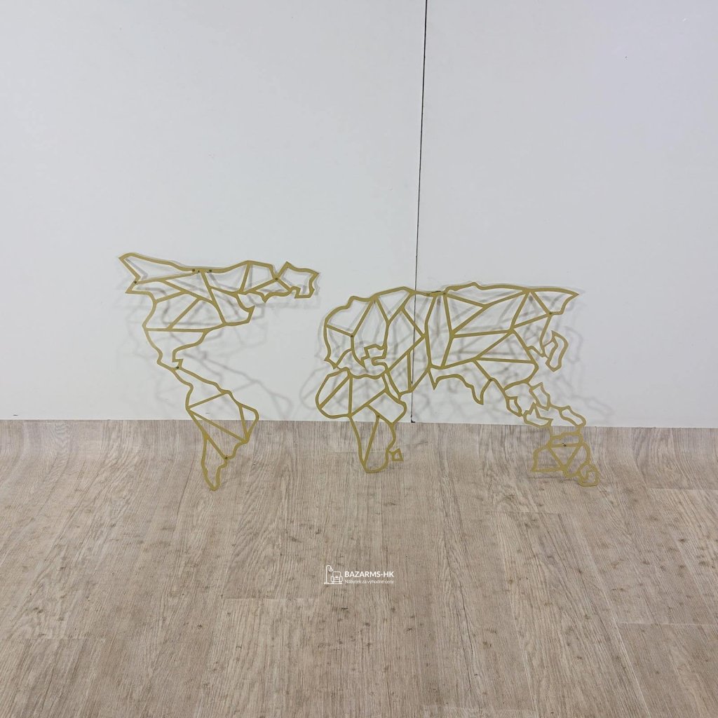 Kovová nástěnná dekorace ve zlaté barvě Geometric World Map, 120 x 58 cm.