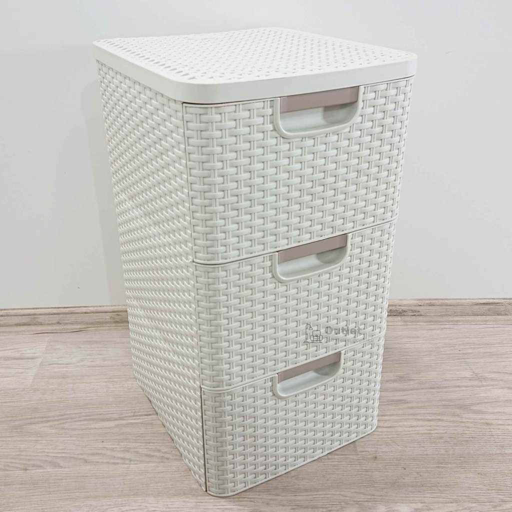 Plastový regál s šuplíky, který můžete využít v koupelně na kosmetiku a mycí prostředky, ale i v předsíni nebo v pokojíčku na hračky.