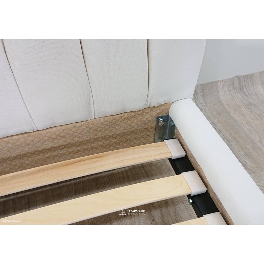 Nepoužité, místy znečištění, postel se nepatrně vpředu zužuje (o cca 2 cm, lamely dle toho zakráceny, nemá vliv na funkci, matrace se vejde).