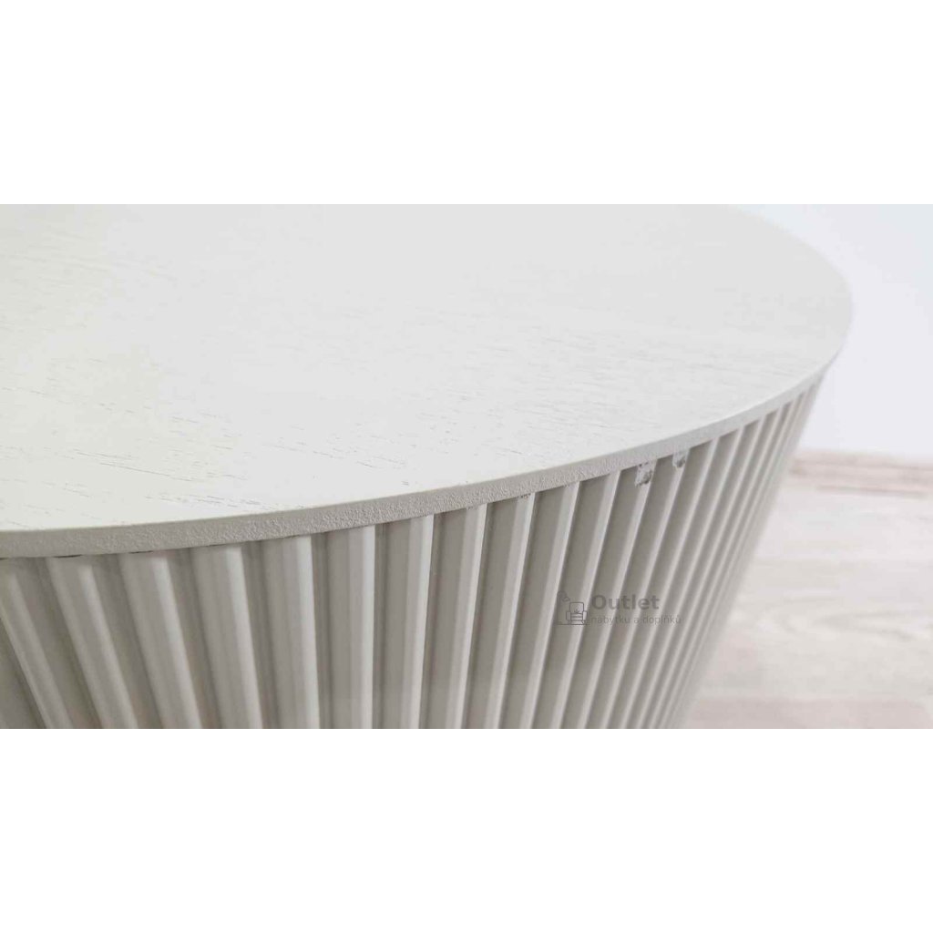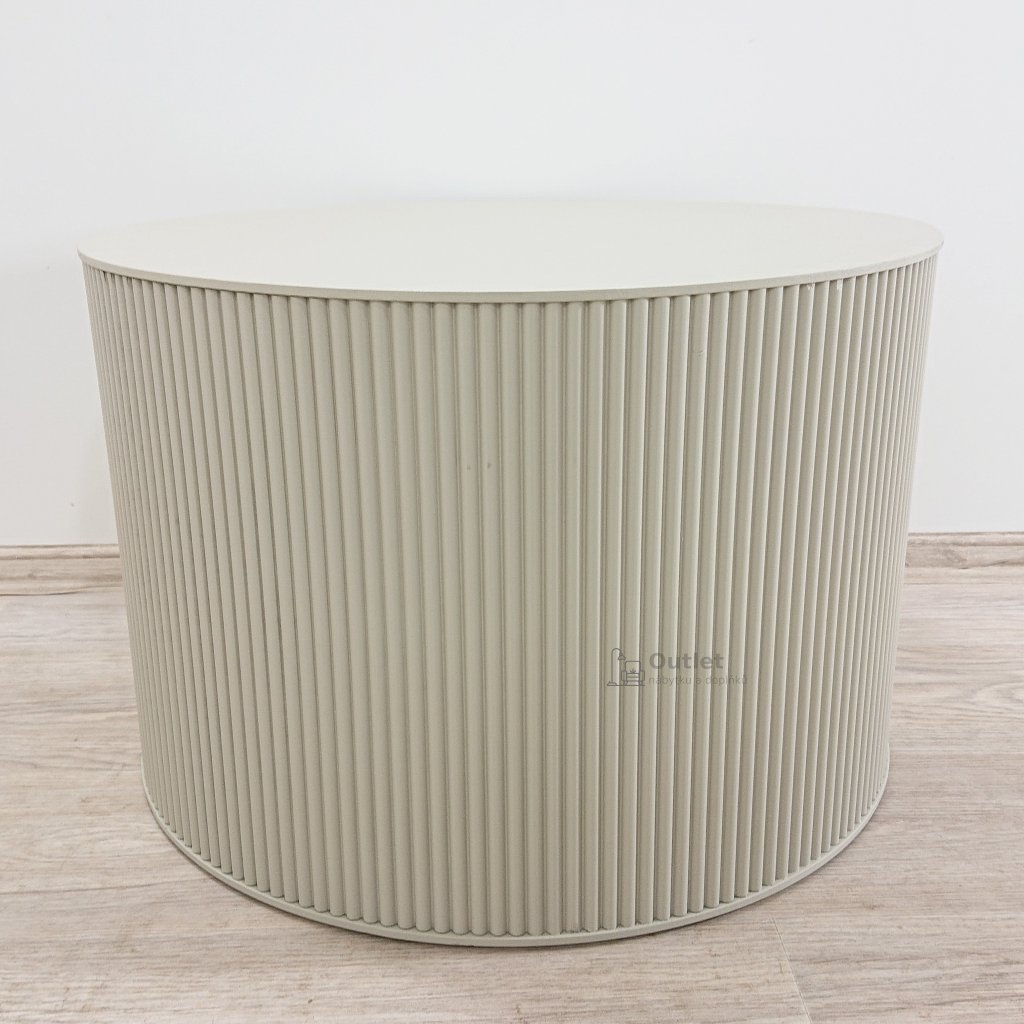 Kulatý stoleček v příjemném decentním béžovozeleném odstínu umístěte před pohovku nebo vedle křesílka. Na desce je vidět krásná struktura dřeva a korpus je vroubkovaný.