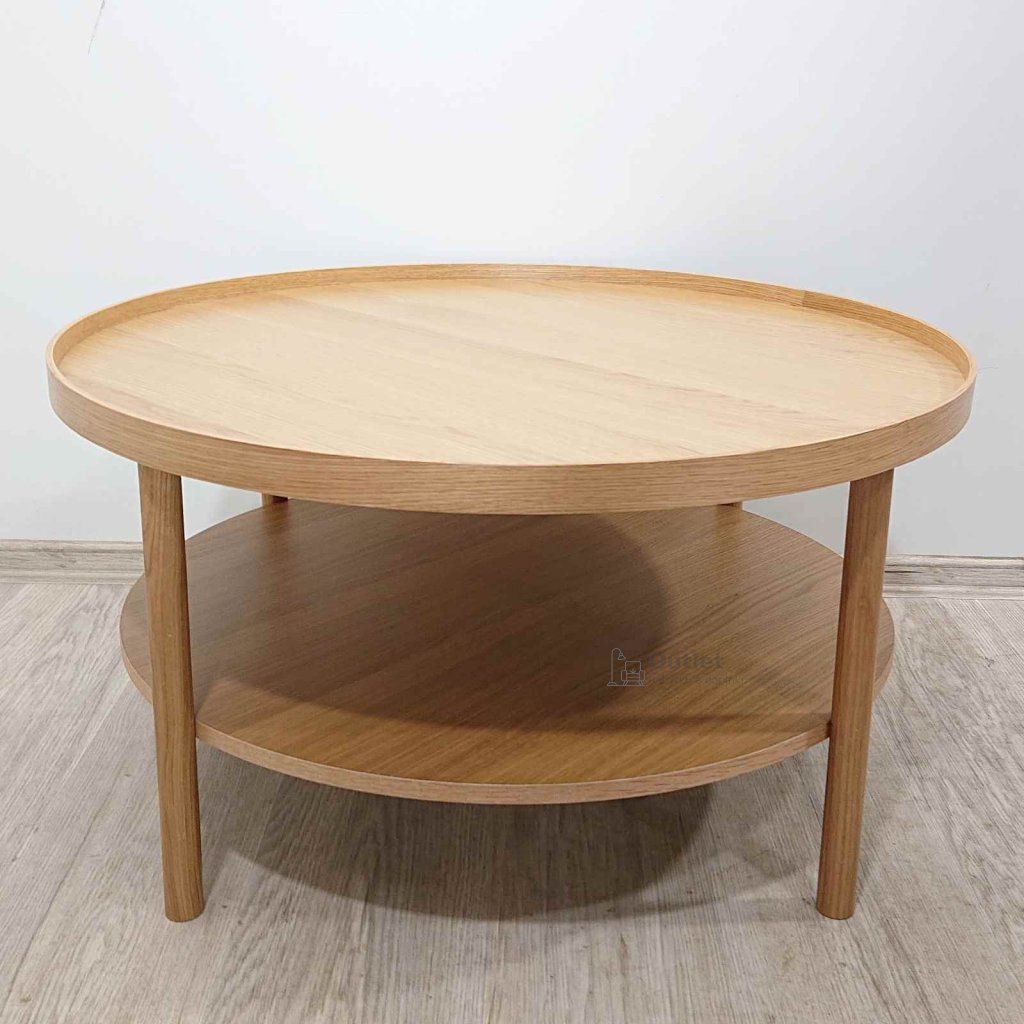 Kulatý konferenční stolek v dekoru dubu vás nadchne. Tento dřevěný konferenční stolek můžete umístit před pohovku nebo vedle křesla, abyste měli po ruce svůj oblíbený drink, kávu i knížku. Přírodní konferenční stolky jsou velice oblíbené, hodí se téměř do jakéhokoliv stylu bydlení.